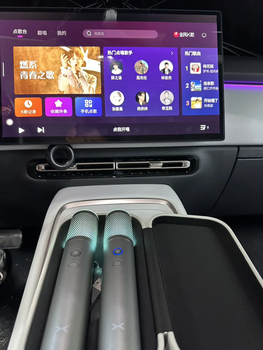 上班的时候,一天到晚对着电脑开会、回消息,整个人都是绷着的。下班钻进车里,关上门那一瞬间,感觉就像换了个人。上班有多正经,这玩意儿就有多放飞。拿起麦克风吼两嗓子,管它走不走调呢,反正车窗一关,谁听得见啊?关键是那个氛围灯还会跟着节奏变色,配合车里的灯带,哎,还真有那么点KTV包间的感觉。