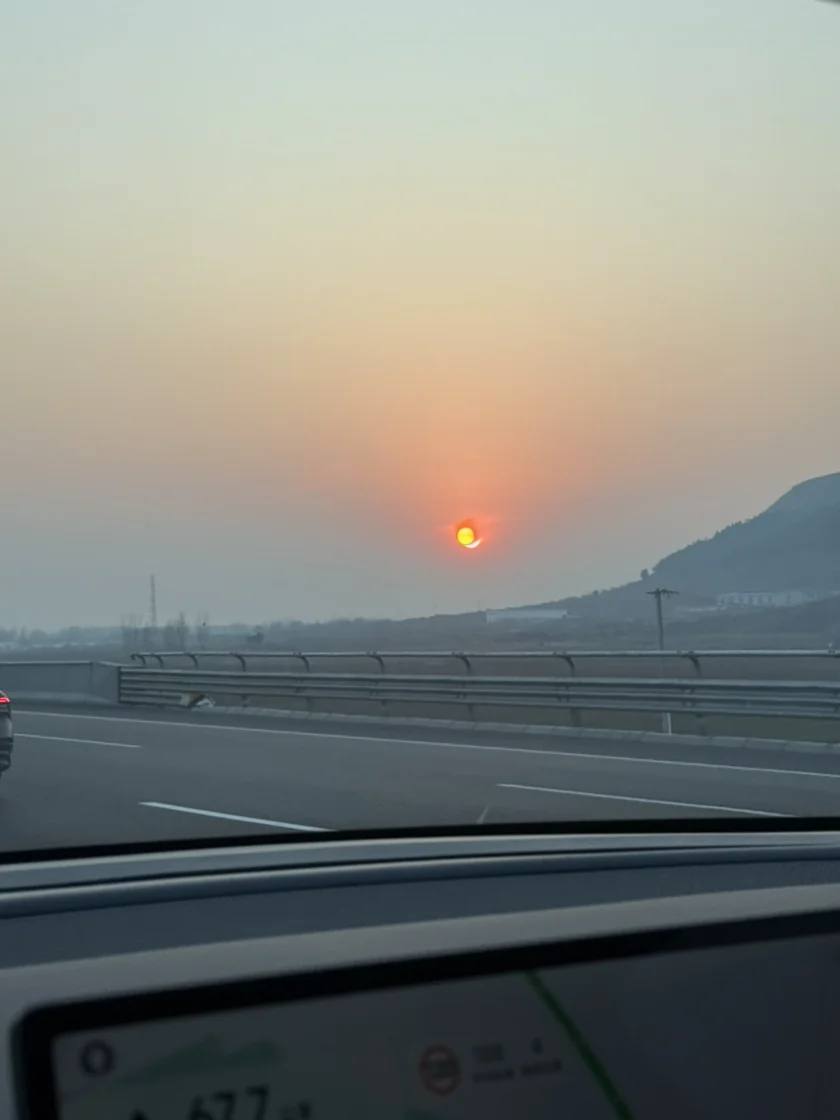 开着小鹏自驾西安在路上看着落日风景非常的美