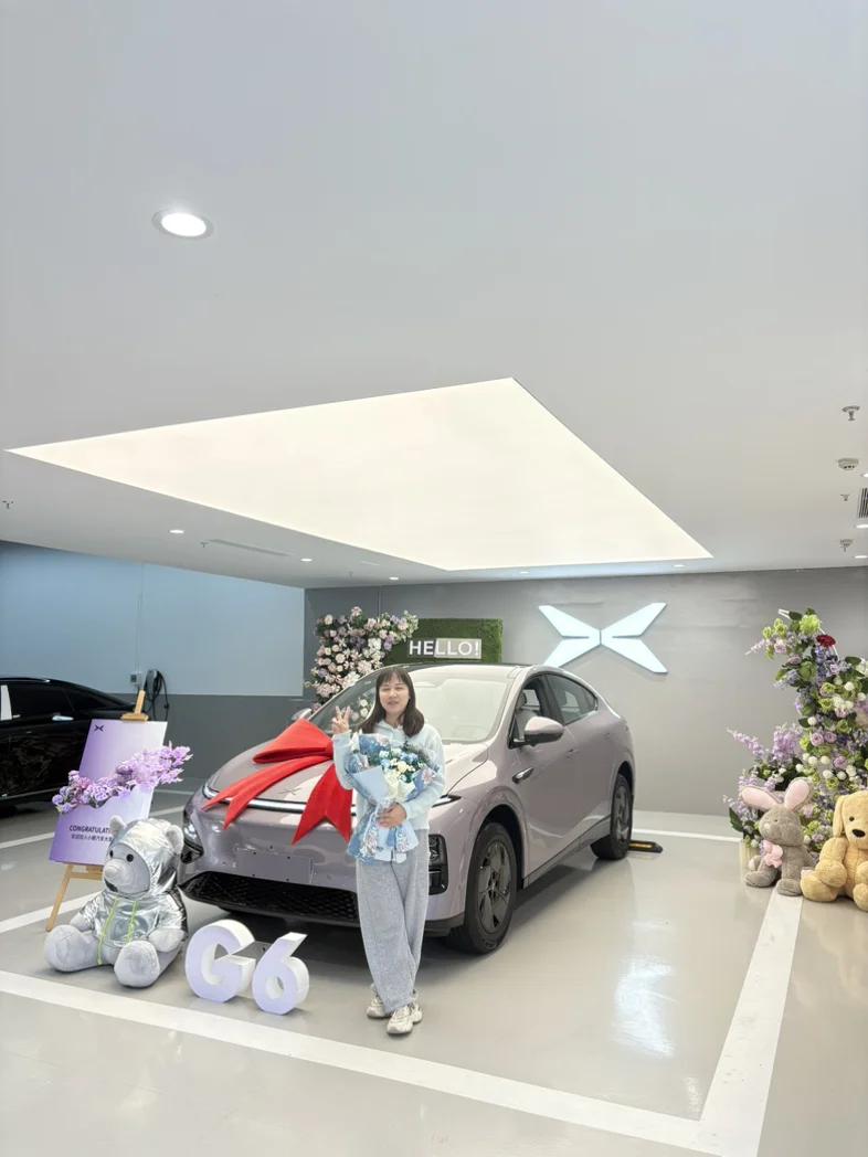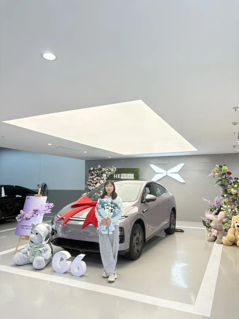 #新鹏友报到# G6提车日记原本计划入手岚图知音,到店后一眼被小鹏G6吸引,流畅动感的外观深得我心,智驾系统好用又安心,越开越喜欢,最终果断选择G6,开启美好出行。