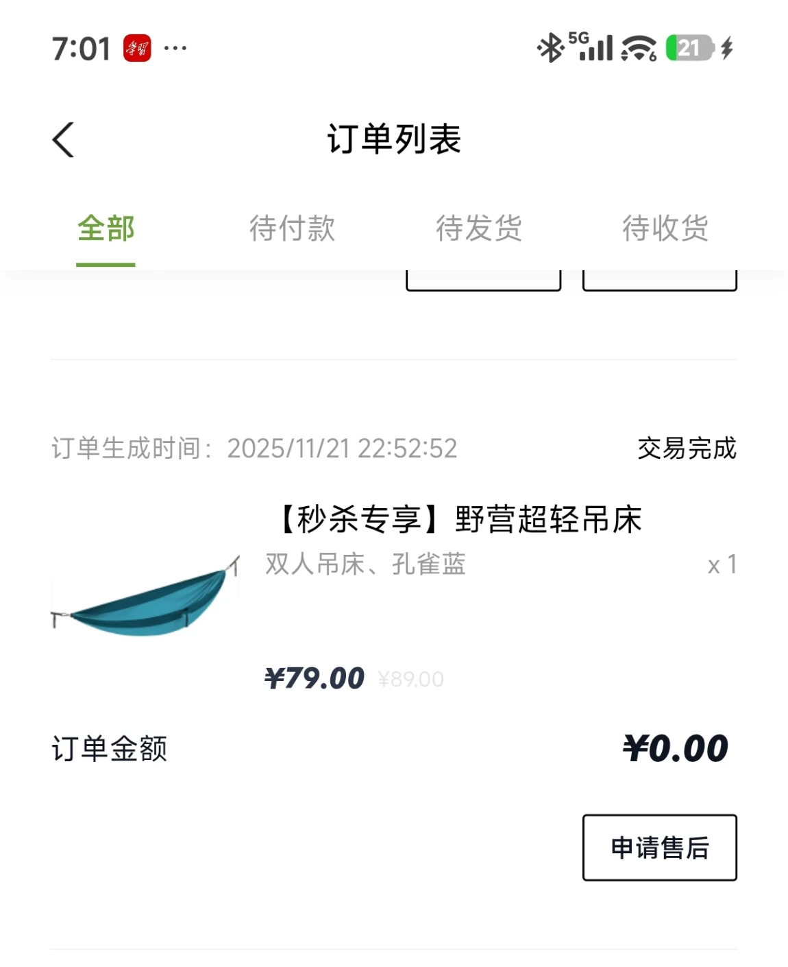 春天到了,首先推荐的好物是双人吊床,非常大,非常结实,两大人坐在里面满满的安全感,收纳方便,不占空间,物有所值,非常推荐