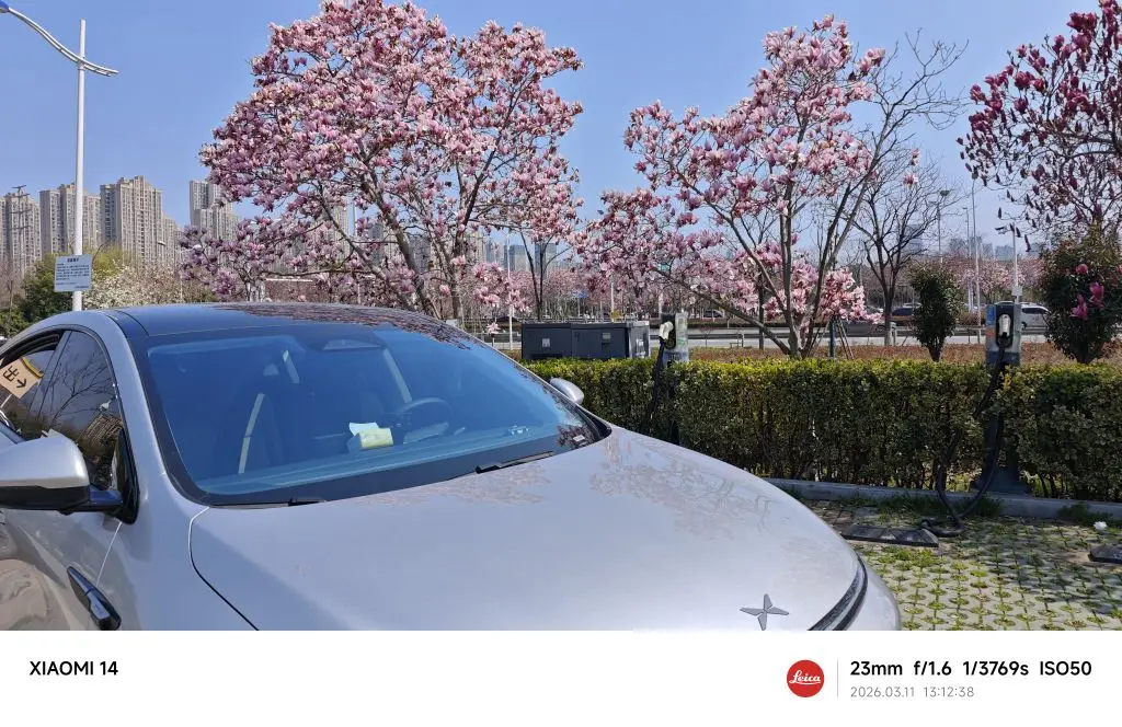 #开小鹏G6去春暖花开的地方##小鹏汽车##小鹏G6#春日满怀周末小假,周末携眷晨游东湖,午逛永旺早晨春风微凉,开着我的小6智驾东湖沿途看绿草如茵,春意盎晨光微熹,驱车携眷,一路春风作伴。东湖岸柳吐新绿,碧波荡漾映晴空,繁花轻绽,水光潋滟,满目皆是温柔春光。稚子与妻子执手漫步湖畔嬉戏打闹,风拂衣袂,岁月安然。午后转赴永旺,停车场又件花开争忍不住拿出手机拍下留念,午后酷热困乏提前打开车内空调小憩清凉舒适烟火与繁华相融,笑语随步履轻扬。一湖春色,一城烟火,一朝一夕,皆是与你相伴的诗意