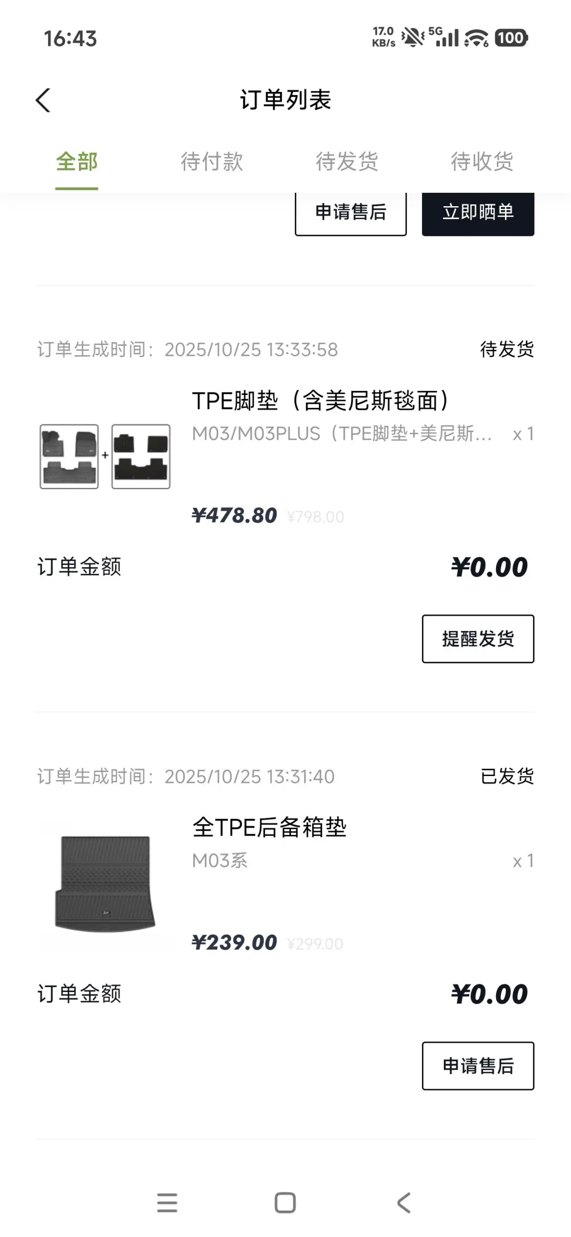 最后是商城的脚垫后备箱垫,质量非常不错,还有后备箱垫,官方的肯定贴合的好。还有商城的玻璃水,下了俩单,没想到一个里面是俩瓶,送亲戚两瓶,现在还也没用完。