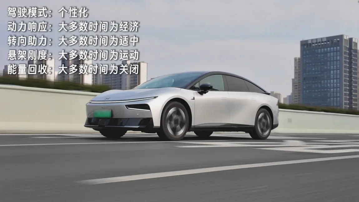 个性化,动力响应:大多数时间为经济,转向助力:大多数时间为适中,悬架刚度:大多数时间为运动,能量回收:大多数时间为关闭。