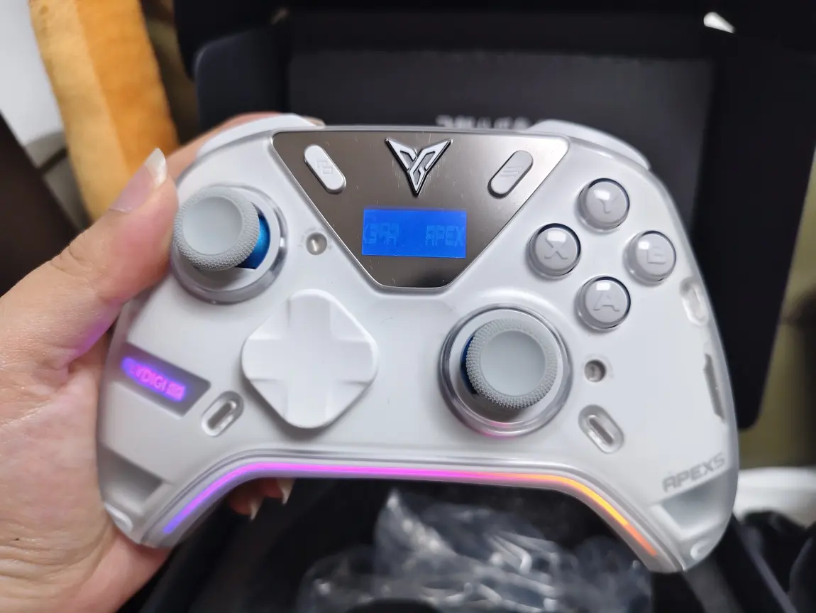 #好物分享# 一眼看中这个飞智八爪鱼5游戏手柄~摇杆丝滑 手感超好 还有rgb氛围灯~跟车内氛围灯太搭了~蓝牙完美链接车机~在浏览器输入网址yikm.net还可以玩各种小游戏,车机秒变小霸王游戏机(づ ̄3 ̄)づ╭❤~在车里休闲时又多了一项娱乐活动~还可以在家链接pc/steam/switch关键是近期小鹏商城里购买价格比pxx还便宜~游戏爱好者快入手吧🤙🤙🤙