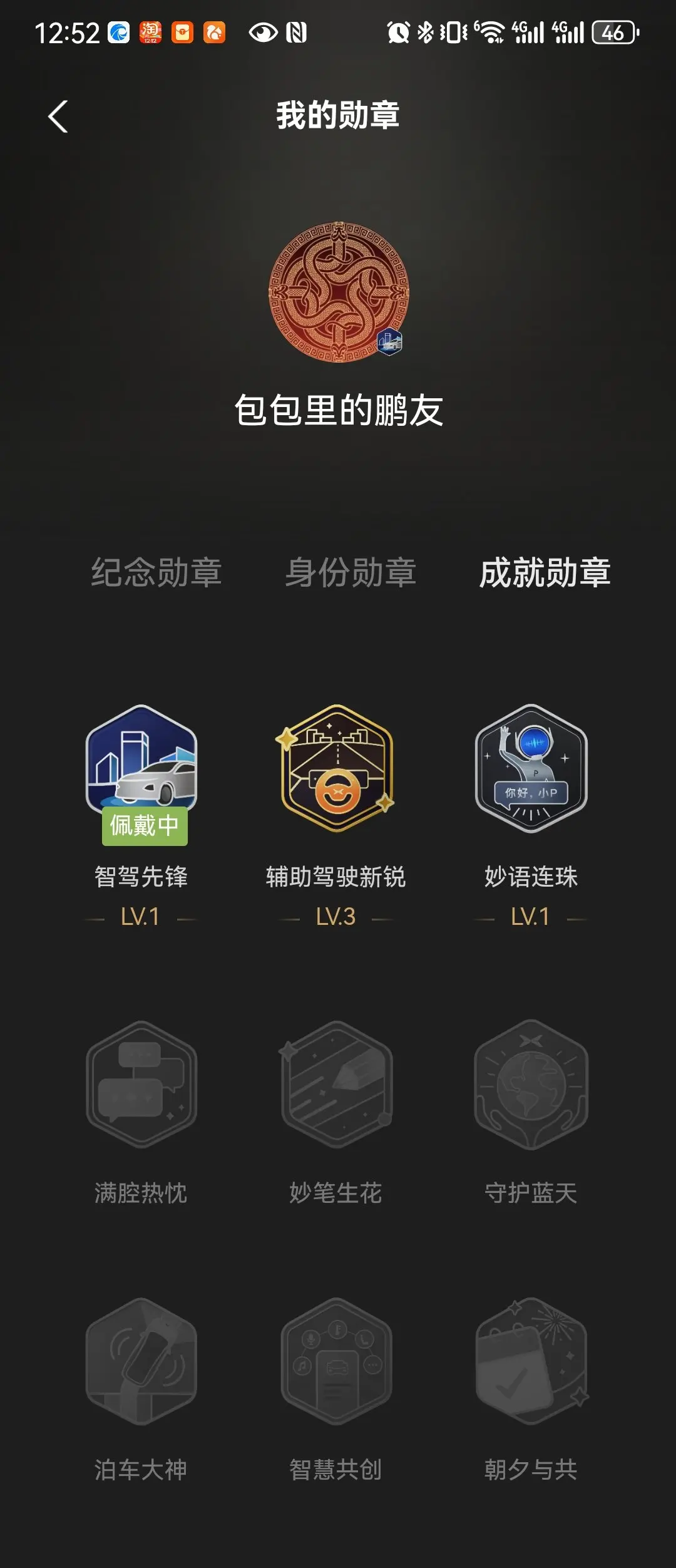提车第二天,已经收集了4快勋章,挺喜欢这个功能,像是小时候在集邮,后边会努力去解锁更多的勋章,期望有更多城市类别的勋章🎖️