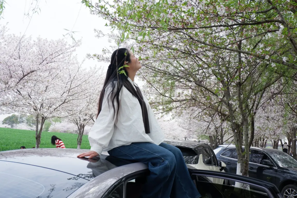 我开着心爱的M03,迎着春风开进樱花大道。风里裹着淡淡的花香,粉白的花瓣簌簌飘落,像下了一场温柔的雪。伸手接住一片,春天的快乐就这么轻飘飘地落进了心里。