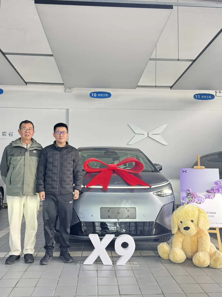 #我的提车作业# 作为24款x9max车主,各方面都十分满意,一年多来全家7人自驾去了霞浦、平潭、桐庐、杭州、武夷山、福鼎、潮汕、南澳岛、泉州等地,续航、空间、智驾和舒适度都完美匹配,留下了全家美好的回忆。一直关注新车进展,26款纯电发布会看到小鹏的诚意第一时间下定,也是苏州第一台星舰灰➕云间玫棕配色,整个订车提车过程销售都十分热情专业,第一时间带着父亲去提车,整个过程顺利愉快,老车给父亲在老家带着亲戚和他的老同学继续出行,新车由我继续开启新的旅程,承载全家人的向往继续出发😎