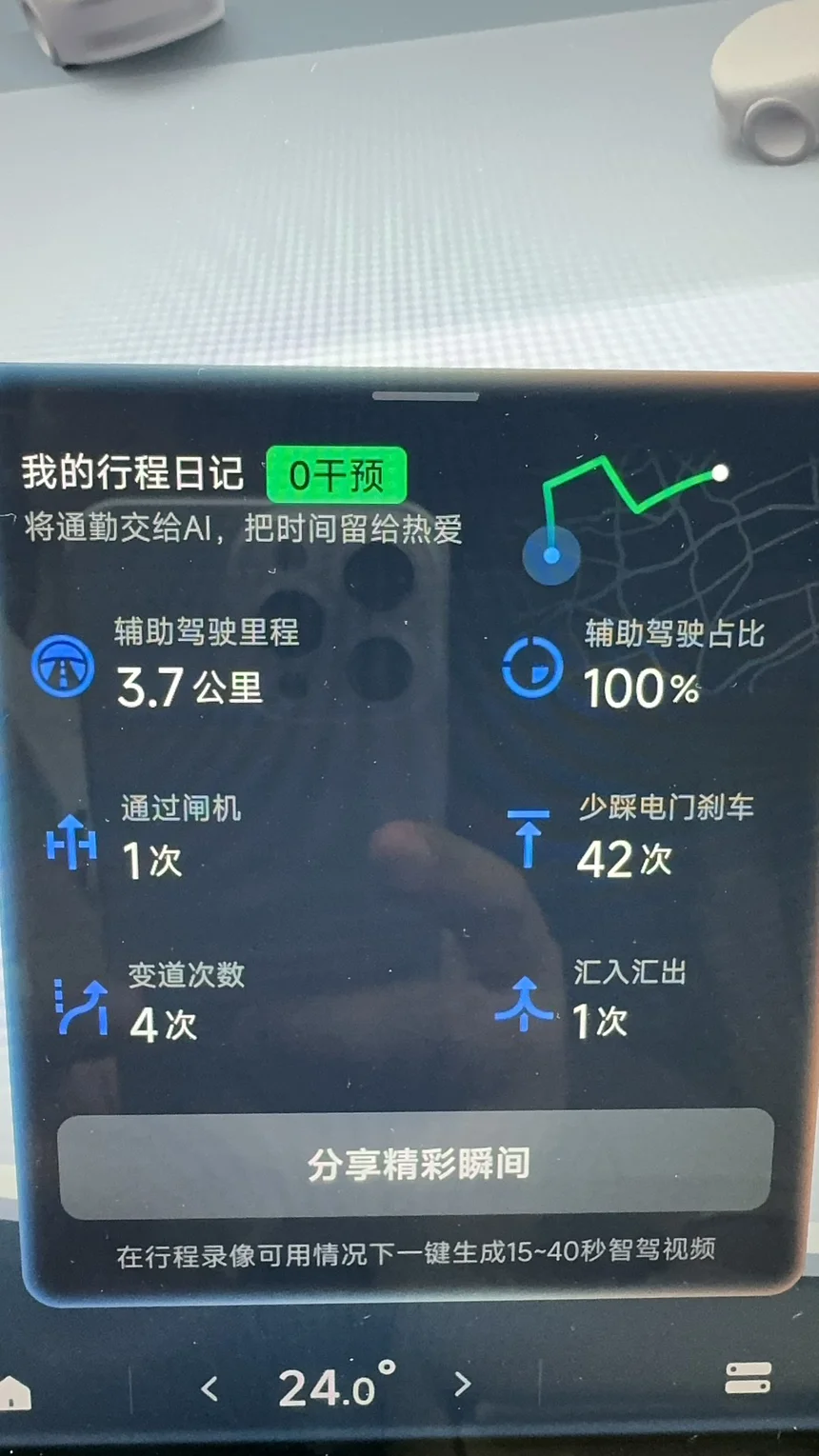 · 高光时刻:在停车场P挡还没起步就可以激活NGP。城区还可无导航漫游。路口右转时突然窜出一辆外卖车,系统没急刹,而是提前微调方向、缓速绕开,整个过程特别“人味儿”。