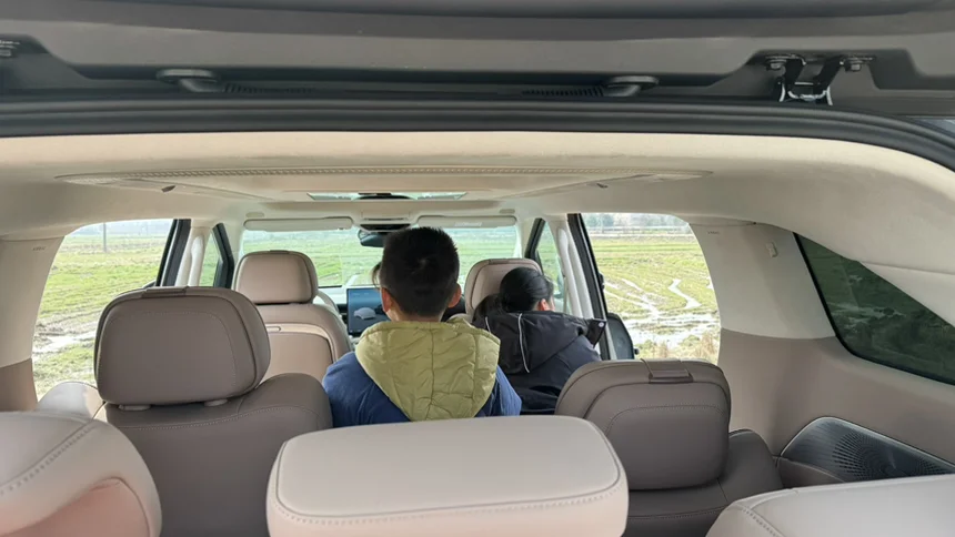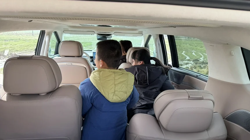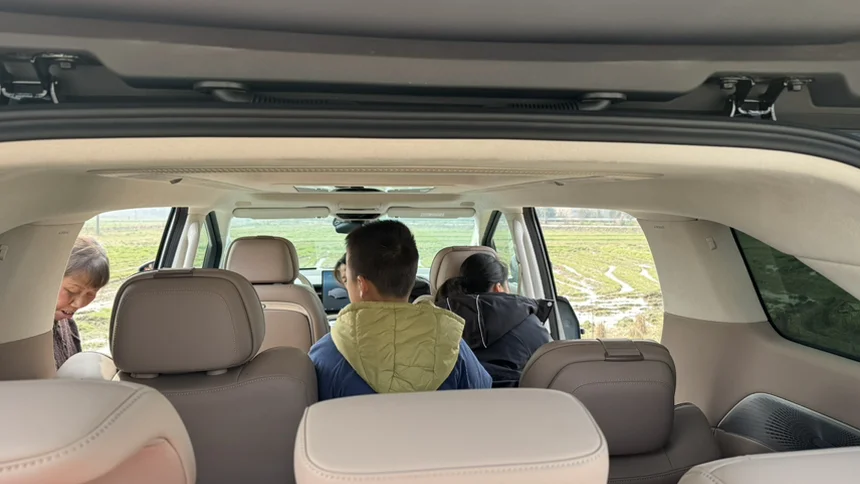 如果累了小鹏X9的后排魔变空间也可派上了大用场,把二排座椅放平,躺在车里透过天窗看花影摇曳,想想都舒服到不想回家。