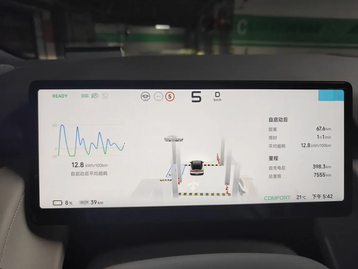充满电,w模式显示495公里,最后还剩8电,跑了398公里,其中高速70公里