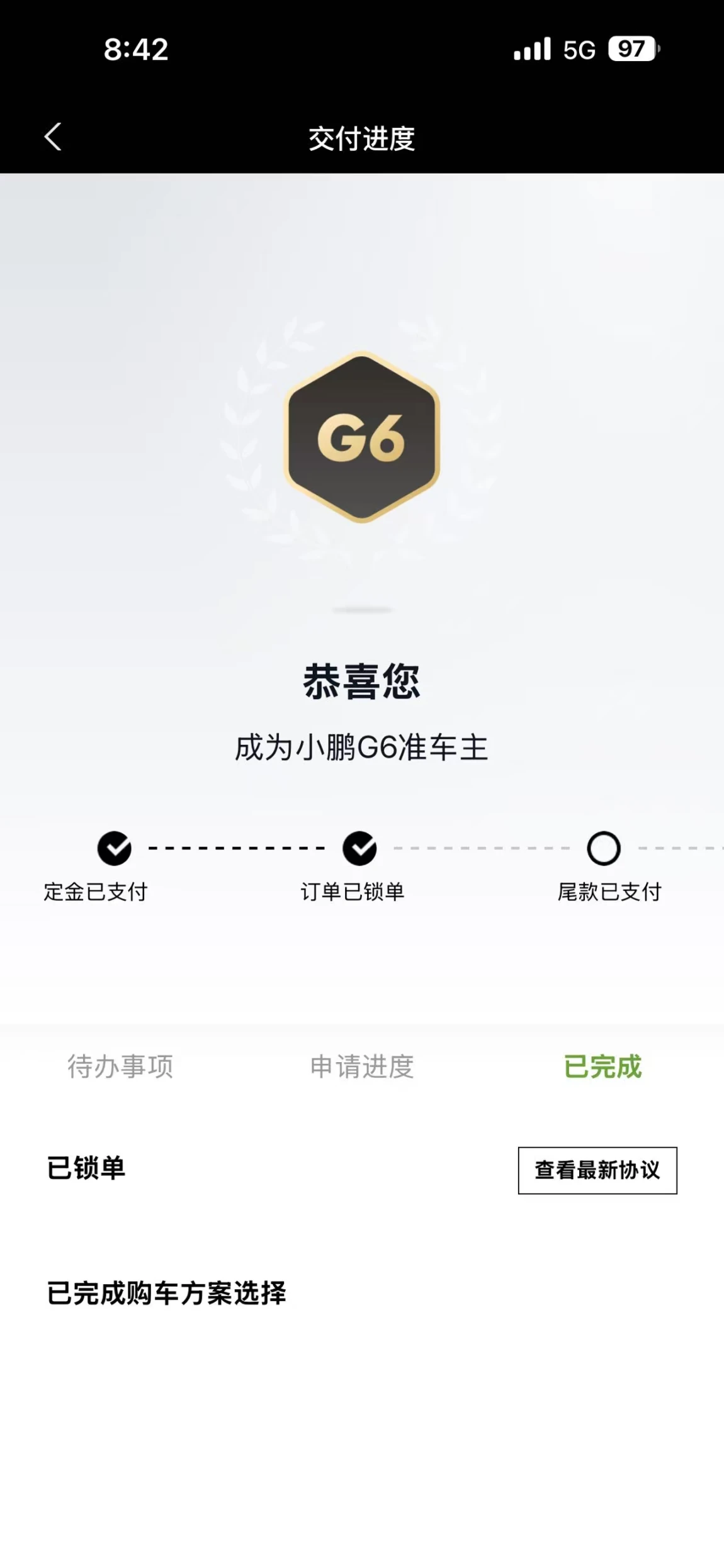 #我的提车作业#1.家的新成员,解锁未来出行新方式!今天正式加入‘鹏友’圈,我的小鹏G6已就位。2.XNGP智驾第一程,丝滑得像个“老司机”。告别油门和刹车的频繁切换,G6的单踏板模式跟车轻松自如。未来的每一段旅程,都 有你相伴,安全感满满。3.中控大屏语音控制‘打开座椅按摩’,响应迅速,科技感拉满。从此,通勤变成一种享受。” 4.800V快充加持,告别里程焦虑!5.新座驾,新生活。愿小鹏G6载着我们,驶向更美好的远方,探索更多风景。