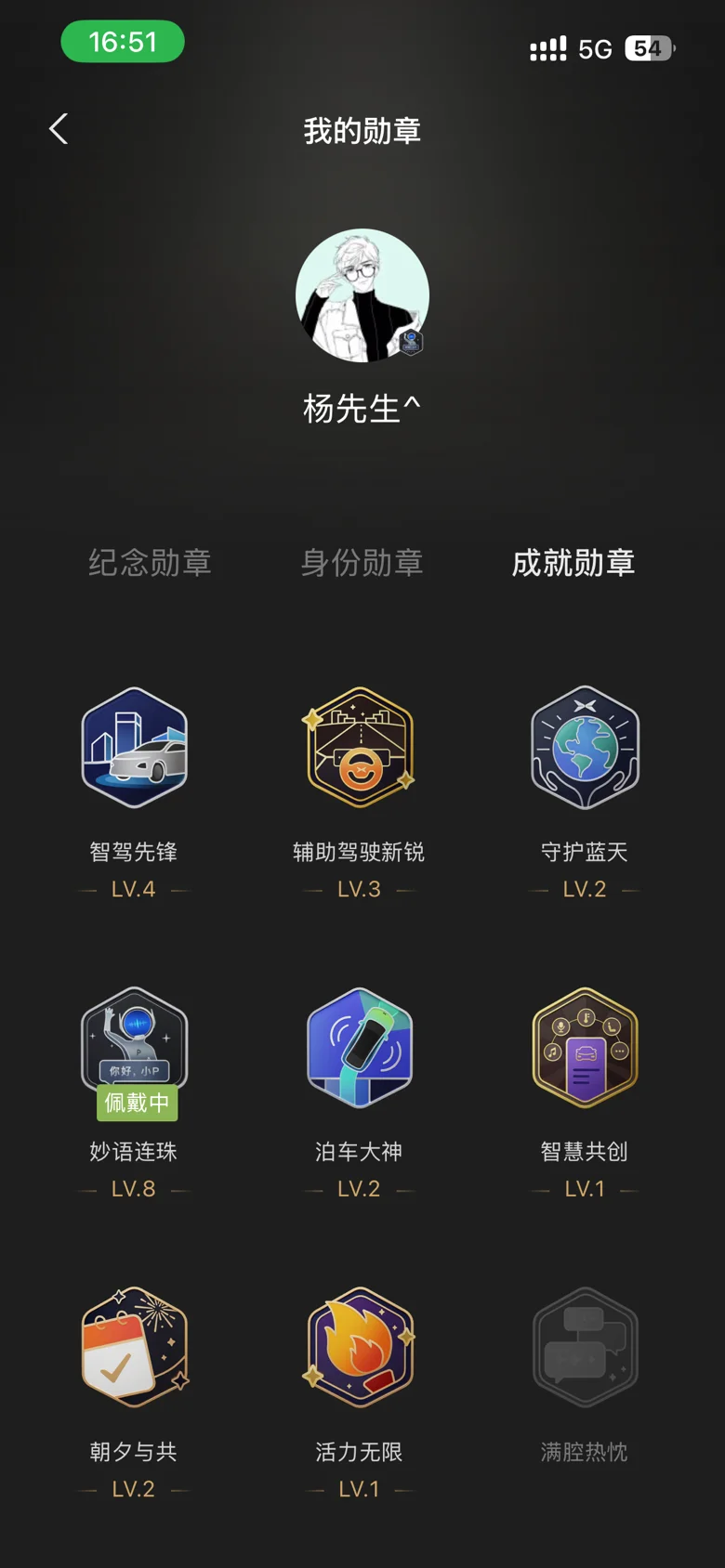最喜欢的就是智能驾驶的勋章,之前自驾游百分之五十都是用智能驾驶,解放自己的双脚,用着很舒服不会很累
