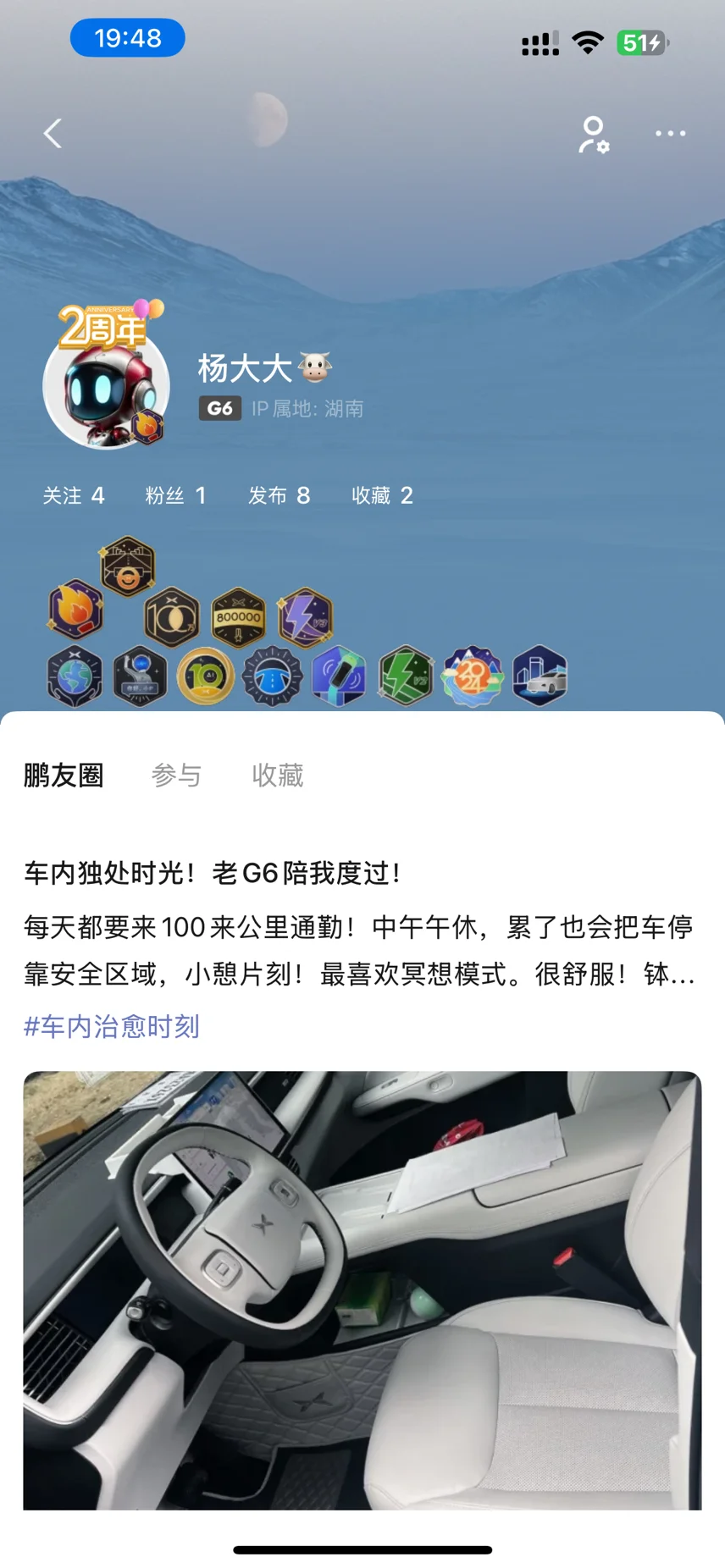 #晒晒我的勋章# 我的小鹏勋章,一天比一天多✨从提车那天起,APP里的勋章就成了我的小期待。第一天:智驾启航者、充电新星一周后:辅助驾驶新锐、妙语连珠一个月:智驾先锋、守护蓝天、充电先锋现在:一整排勋章慢慢攒满。每一枚都不刻意——开智驾、喊小P、日常充电、多跑里程、社区分享。日子一天天过,勋章一枚枚多。不是为了收集而收集,是和小P相伴的每一段里程、每一次互动,都被悄悄记下来,变成看得见的荣耀。继续开,继续解锁,让热爱,一天比一天更满。