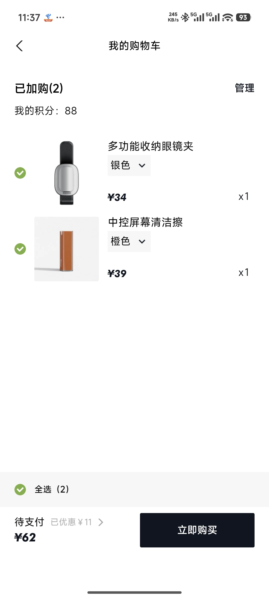 我的购物车里基物品本都是以车辆上使用为主,多功能收纳眼镜夹,戴眼镜的我,眼镜比较多,所以很适合买一个放在车上备着。另一个,中控屏幕清洁擦也比较实用,很不错!