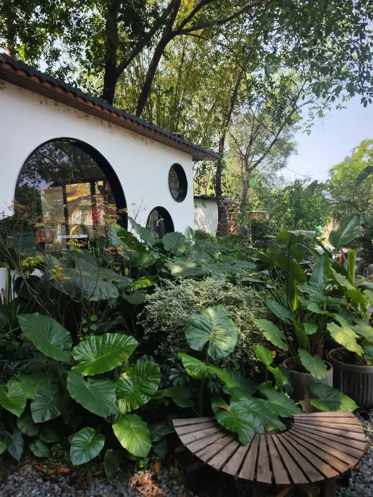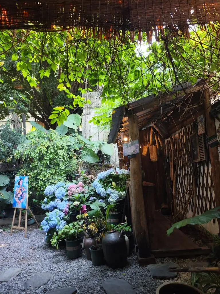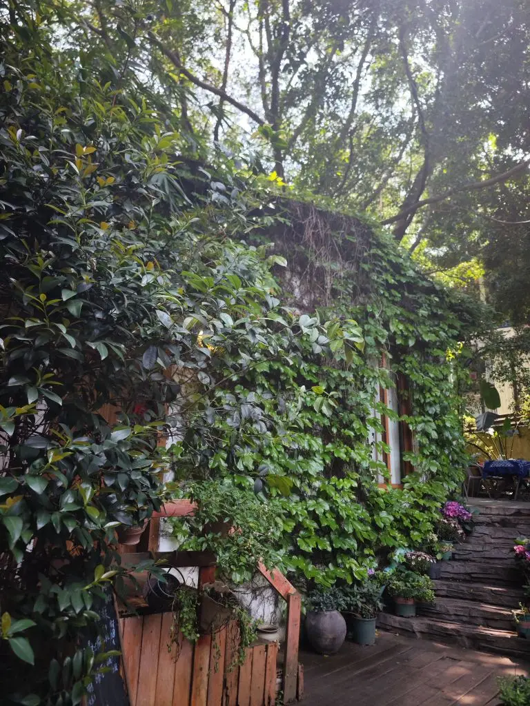 藏在城市里的治愈小院🌿 阳光穿过层层叠叠的树叶,在石板路上洒下斑驳的光影,推开那扇藏在绿意里的门,就撞进了一个被温柔包裹的世界。 爬满青藤的老屋、满院盛放的绣球、错落的绿植与陶罐,把烟火气揉进了自然里。白墙圆窗映着树影,竹编棚下挂着暖黄的灯,照片墙贴满了旅人留下的故事,便签纸上写满了未说出口的心事。 在这里,时间仿佛慢了下来。风穿过竹林,叶影摇晃,连空气里都飘着草木的清香。不必追赶什么,只需要找一处角落坐下,看阳光漫过窗台,