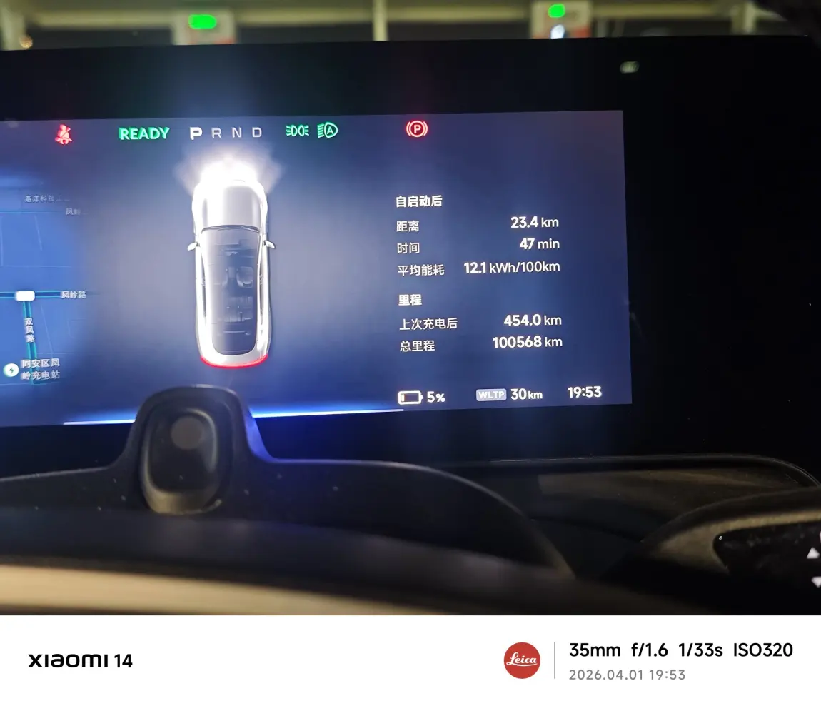 十万公里的老p7续航达成率,586N,小鹏超充冲 95%,表显续航480km(wltp),实际跑了454km,还剩5%,30km(wltp),跑赢了wltp
