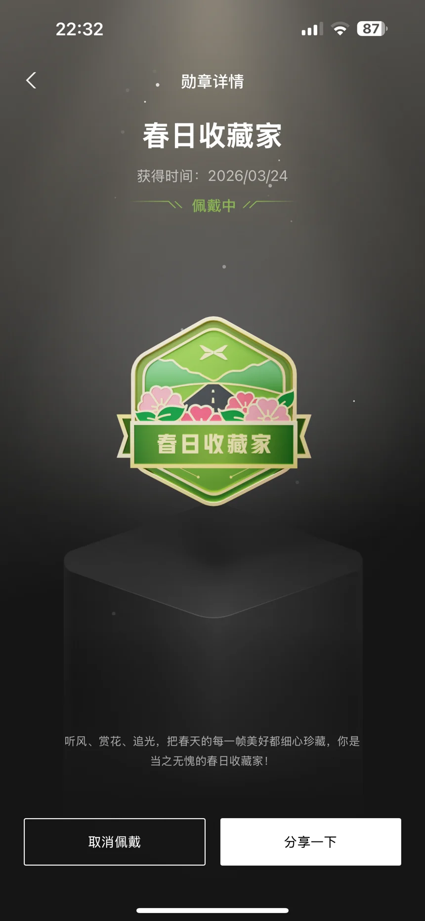 我现在收集了好多勋章,现在佩戴的是春日收藏家这个很符合现在的季节的勋章。