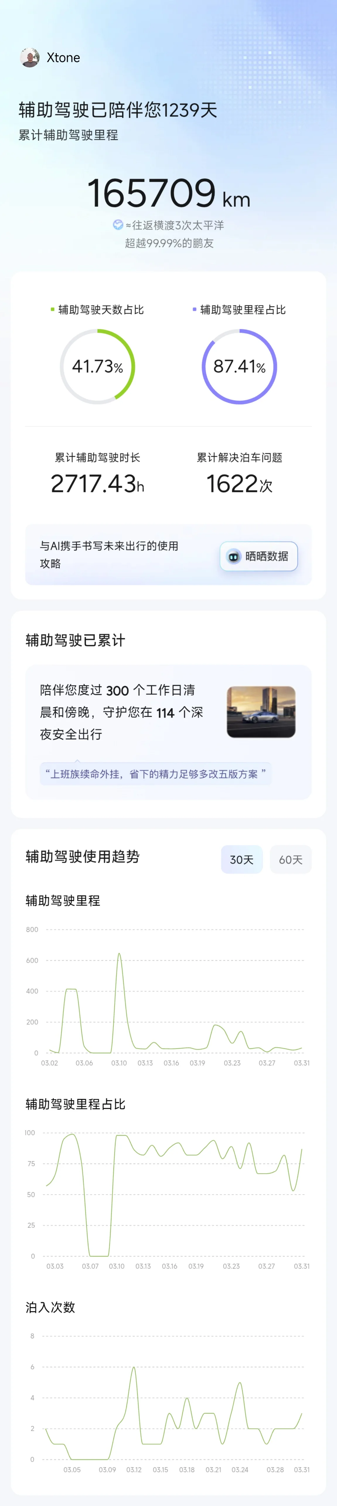 #我的辅助驾驶数据# 今天终于收到万众期待vLA的ota,立即体验300多公里,高速变化不大,过etc更丝滑了!城区唯一大感受是起步就是NGP,但是掉头,入小区弯变化不大!国道变化最大,切弯又顺又快,大弯最低速度都有40!牛牛牛!超车,压线,仍是存在!进步了,但L4应该不到