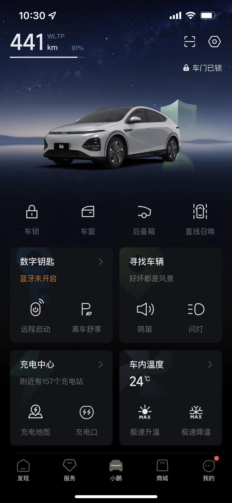 远程控车:在App首页的“车辆控制”里,可以远程锁车/解锁、开关车窗、开启后备箱、预热/预冷空调等,冬天夏天必备。