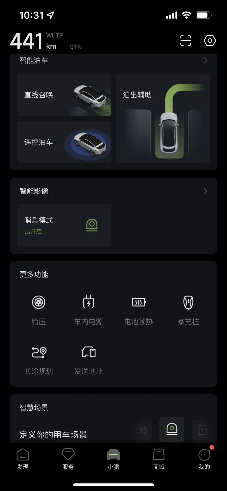 智慧场景:这是小鹏App的灵魂!它就像手机里的“快捷指令”,可以让你的车根据特定条件自动执行一系列操作。比如“上车自动开空调”、“下雨天自动除雾”、“到家前自动关空调”等。
