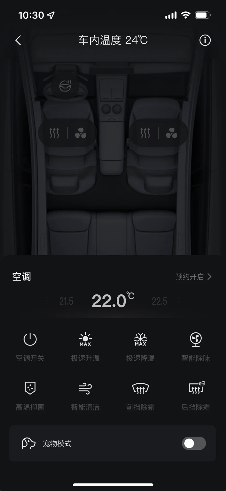 一键通风:车辆暴晒后,上车说“你好小P,一键通风”,座椅通风全开,空调快速降温。