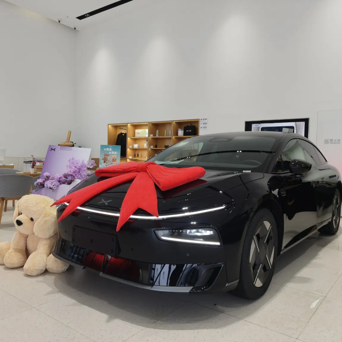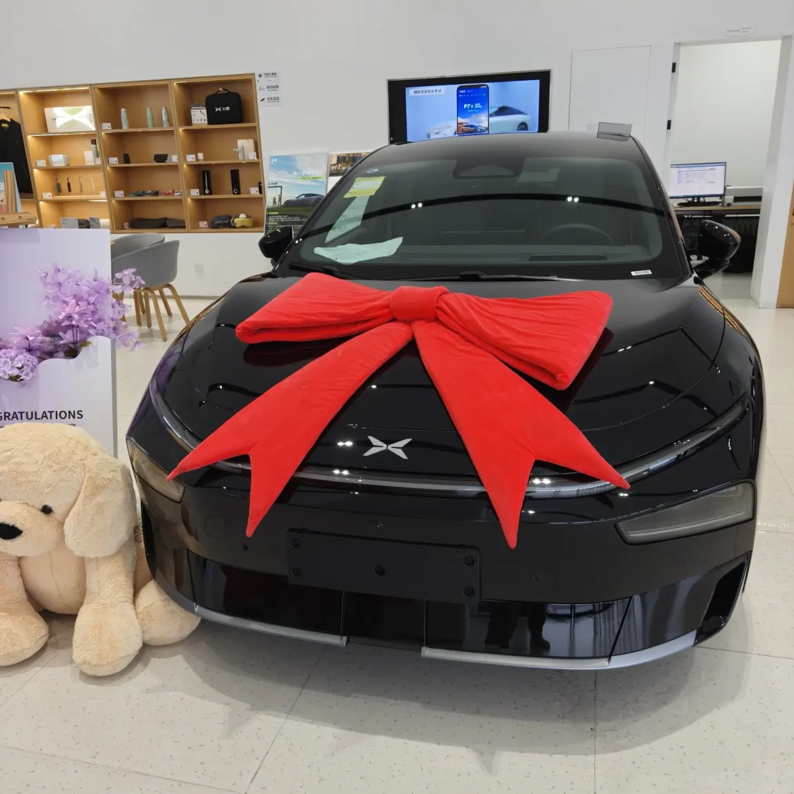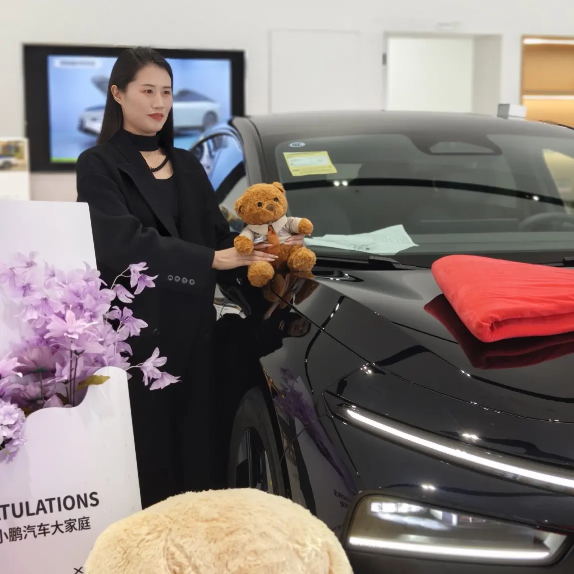 🚗✨终于提车啦!黑色车身搭配大红蝴蝶结,仪式感满满❤️。展厅布置温馨,工作人员贴心周到😊。旁边的大熊玩偶也太可爱了吧🧸!整个过程顺畅又愉快,细节处处体现用心🌟。爱了爱了,小鹏友真的值得拥有🥰!