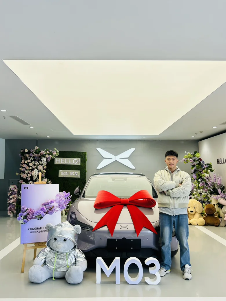 #我的提车作业# 25款m03提车啦,从下单到提车等待时间仅仅只需要4天!下单前也试驾过其他品牌的车,但还是选择了小鹏,颜值智能智驾空间都是吸引我的地方,无论是下单还是提车的时候我的销售都非常负责事无巨细的给我讲解和安排办理手续,这一点让我的体验非常好!新车已经开了2000公里,整体体验很好,非常舒适,未来并肩作战!#我的提车作业#
