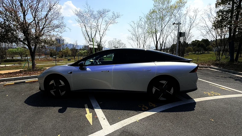 低趴流畅的溜背轿跑身姿,没有多余的棱角,线条从车头一路顺滑延伸至车尾,自带从容又凌厉的气场。车头一体式无缝贯穿LED日行灯简约利落,没有繁杂的设计,却将未来感拉满,透着独属于智能电动车的高级格调。