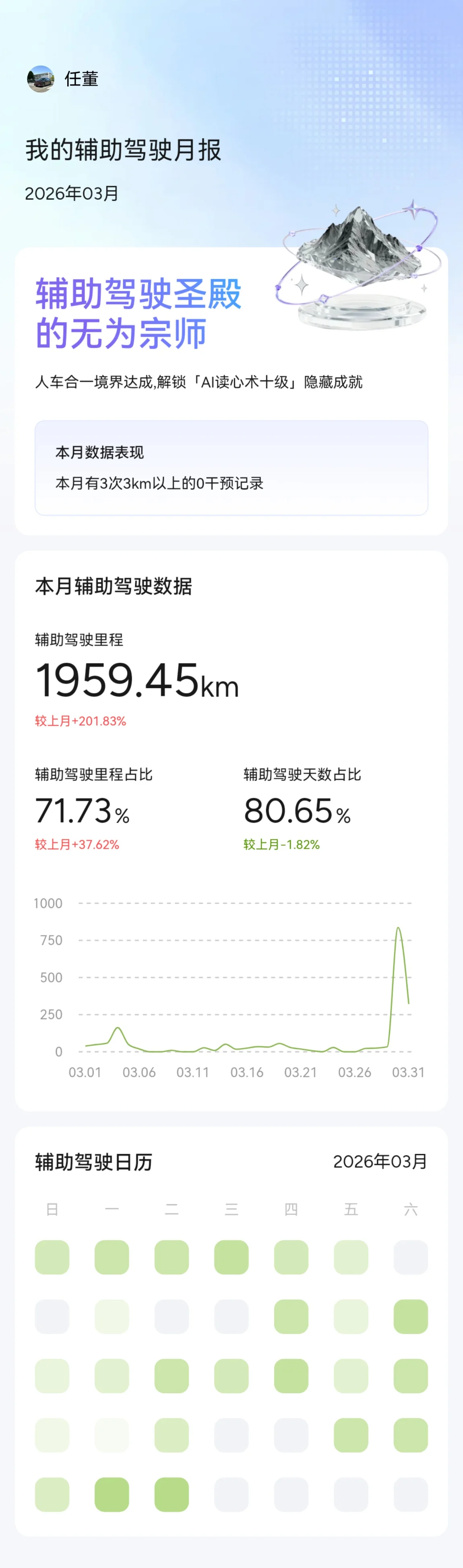 直接解锁「辅助驾驶圣殿的无为宗师」称号