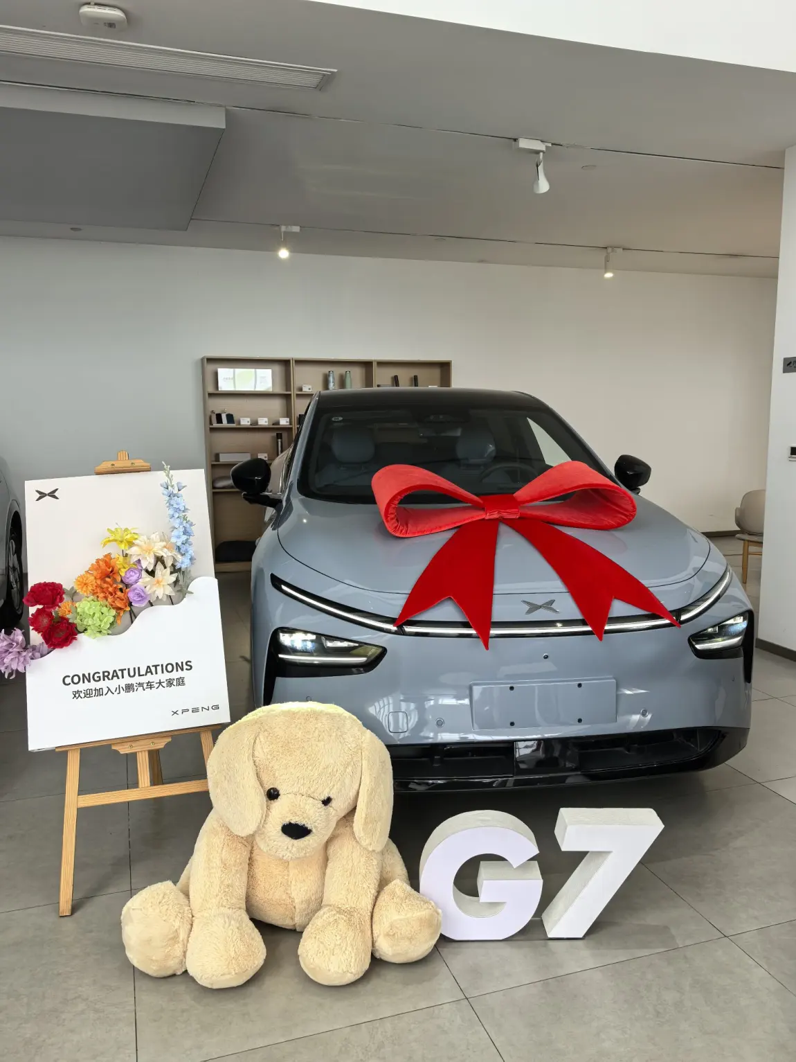 赶上了G7末班车,买车前做了各种攻略,提车的时候找了个师傅帮忙验车,门店还是比较仔细的,车况很好,外地提车的,上牌资料准备的很齐全,送的小熊盲盒开到了最喜欢的一只!