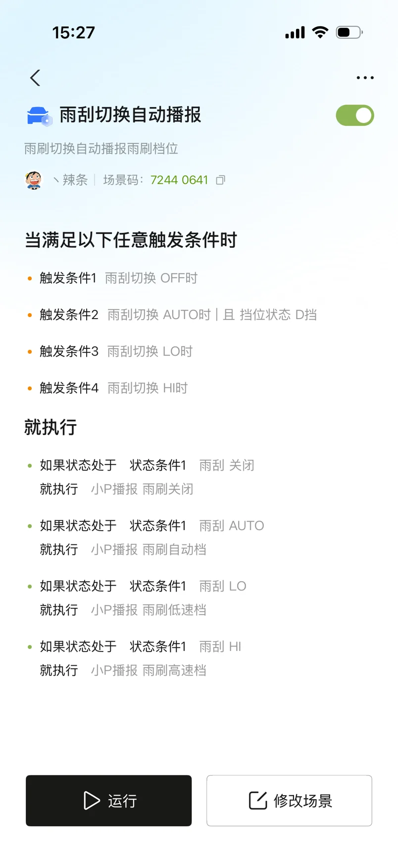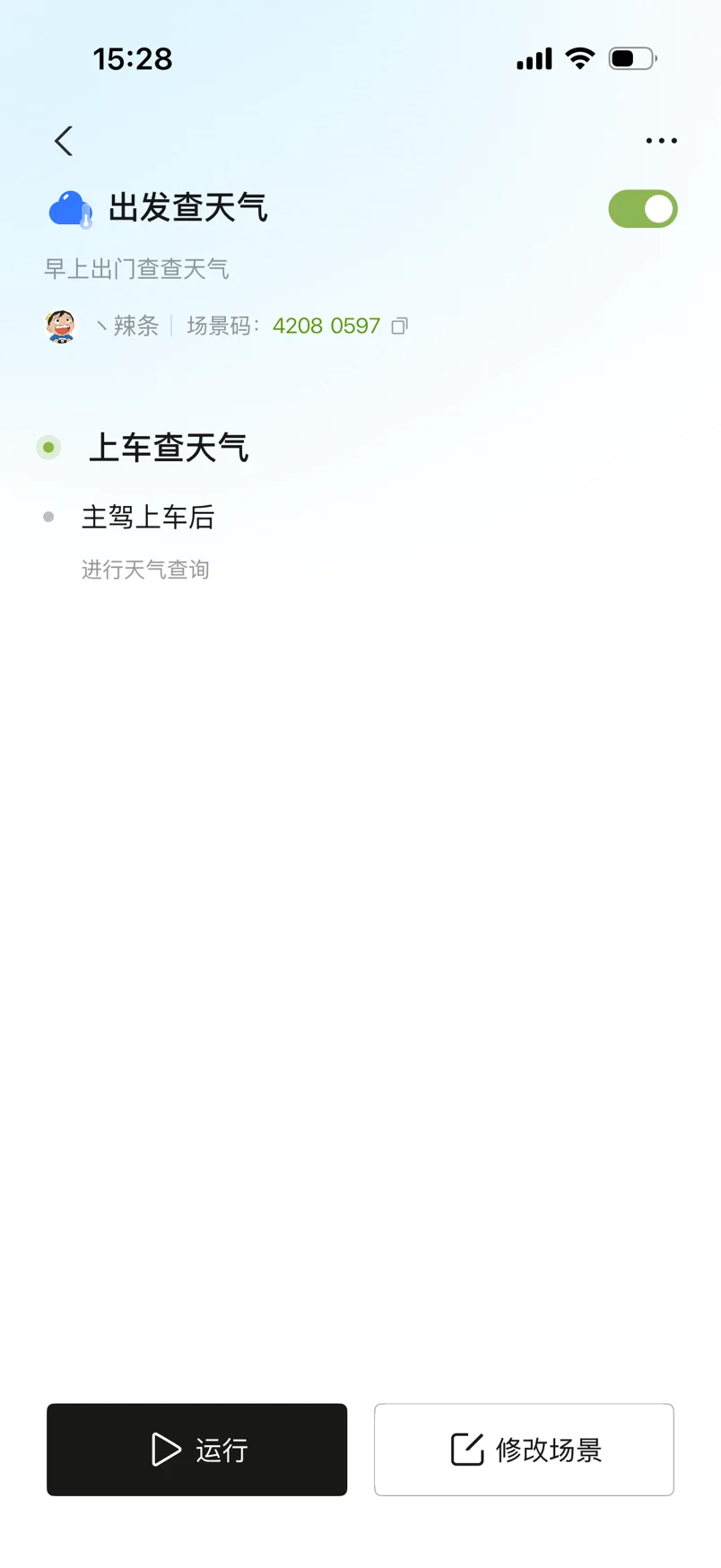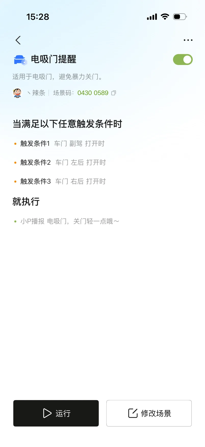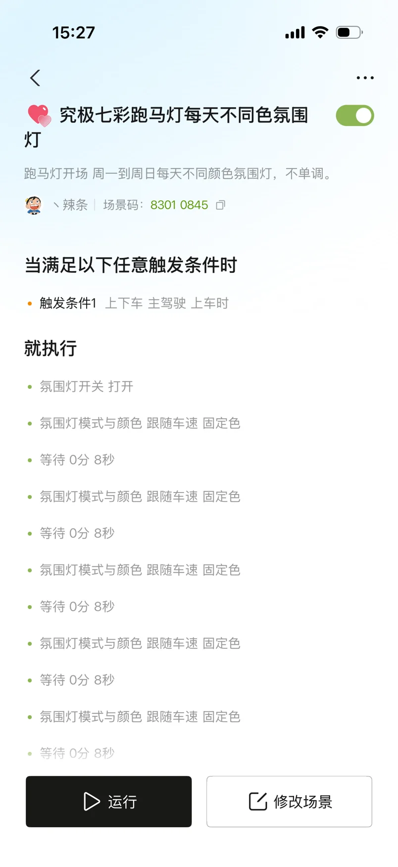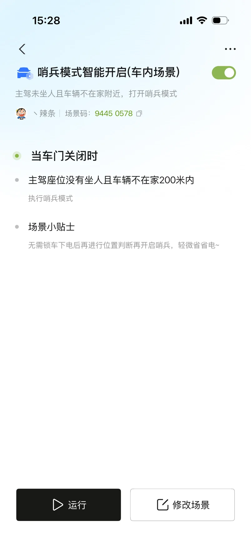 几个很好用的智慧场景一用一个不知声,让你的爱车更懂你。图片上有场景码,添加就可以了!😎
