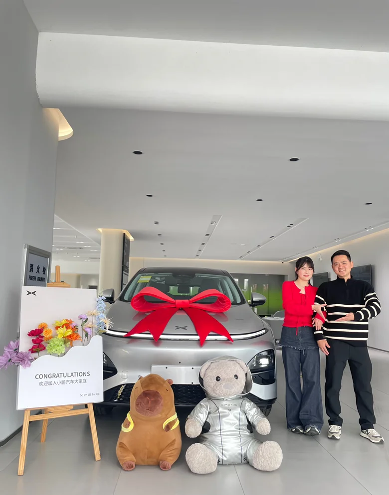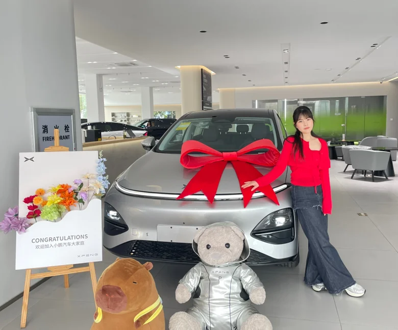 #我的提车作业# 小鹏G6提车啦!和老公到店签到核验后,交付专员陪同验车,绕车查车漆、玻璃、轮胎,车内测试车机、灯光、空调、语音助手“小P”。确认无误后付尾款、办保险、领临牌,专员详解XNGP、充电等功能。最后鲜花合影、交车礼,仪式感拉满。不得不说G6电门响应快,加速平顺无顿挫,动力随踩随有。8155芯片车机流畅,语音控制精准好用。底盘舒适,滤震好,隔音佳。XNGP智能驾驶省心,长途不累。续航扎实、快充快,几乎无里程焦虑。整体颜值、智能、舒适都很满意,家用出行超合适。超级喜欢😘