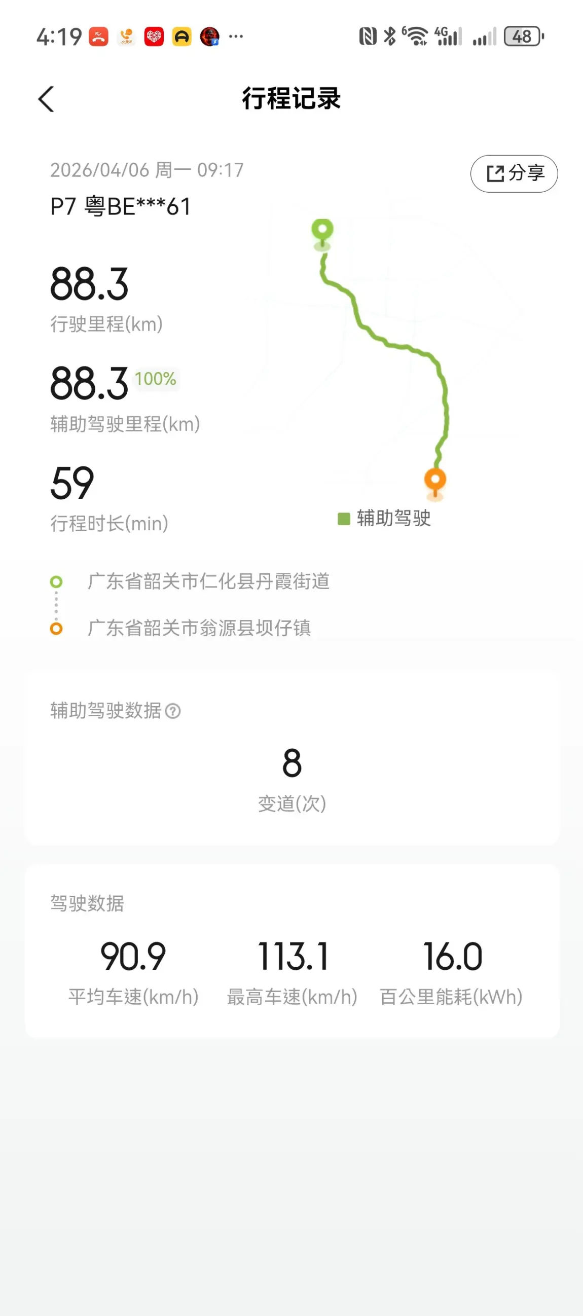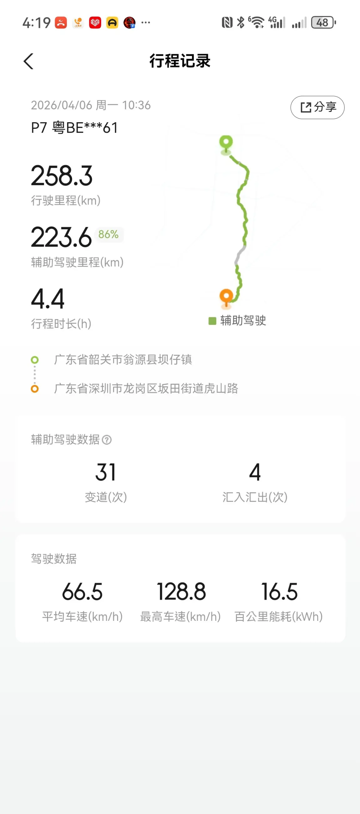 清明小长假总里程406公里,耗时5个半小时!全程没补电%95的辅助驾驶!百公里能耗16.5KWh,升级完VLA2.0跑高速再也不会往右边靠了!