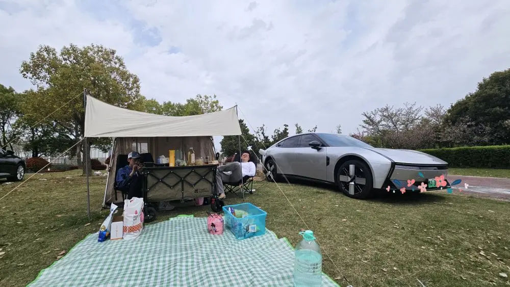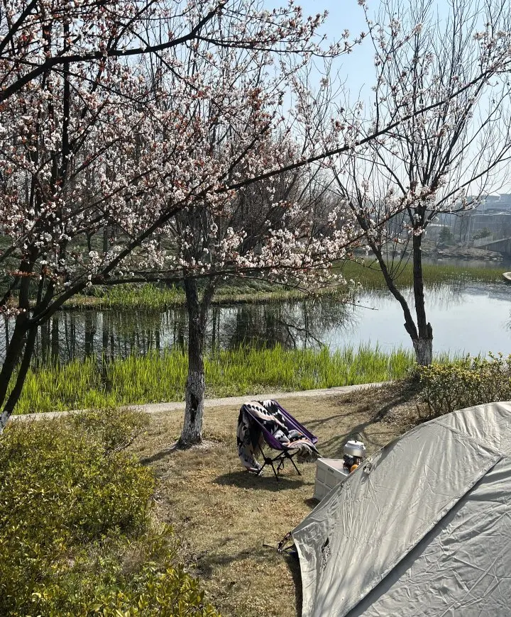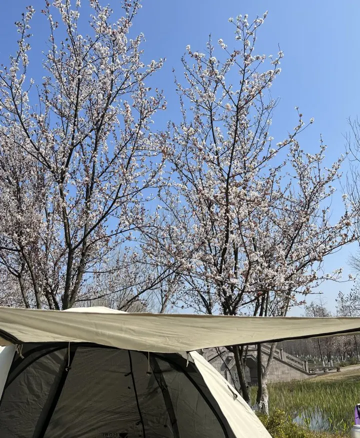 这次出行,我还带上了家里的毛孩子。它把脑袋探出车窗,耳朵被风吹得飞起,兴奋得尾巴摇个不停。到了目的地,我们扎帐篷吃烧烤,在花树下撒欢奔跑,它在草地上打滚,我在一旁记录下这些快乐的瞬间。