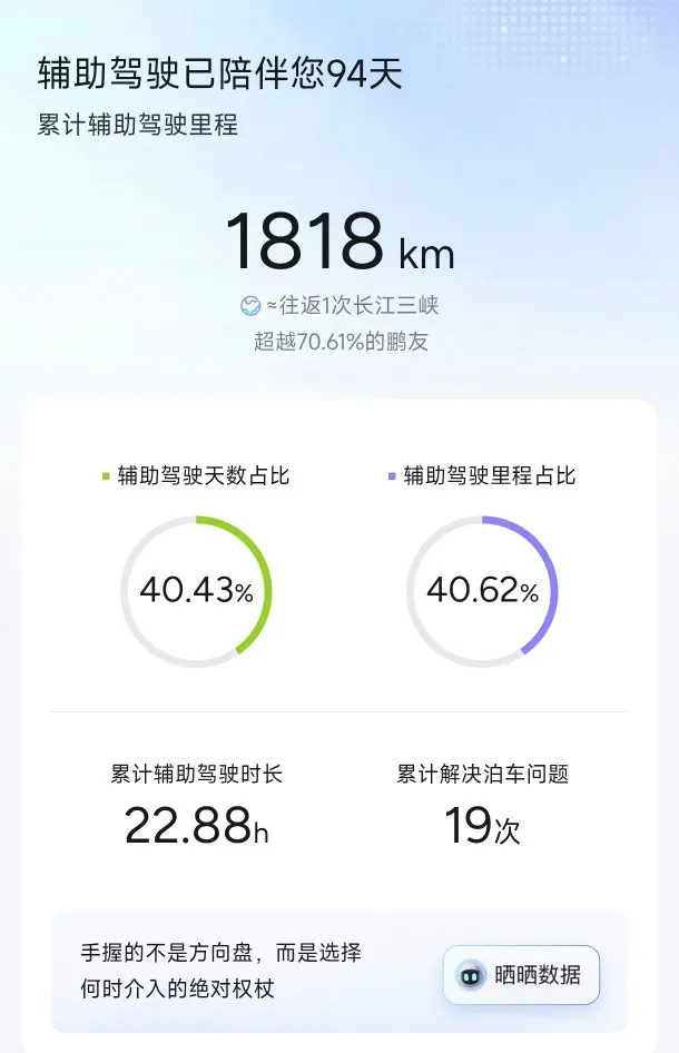 小鹏辅助驾驶确实比较方便,清明两天1100公里,幸亏有小鹏汽车。高速行驶以前是紧紧张张,现在是轻轻松松!
