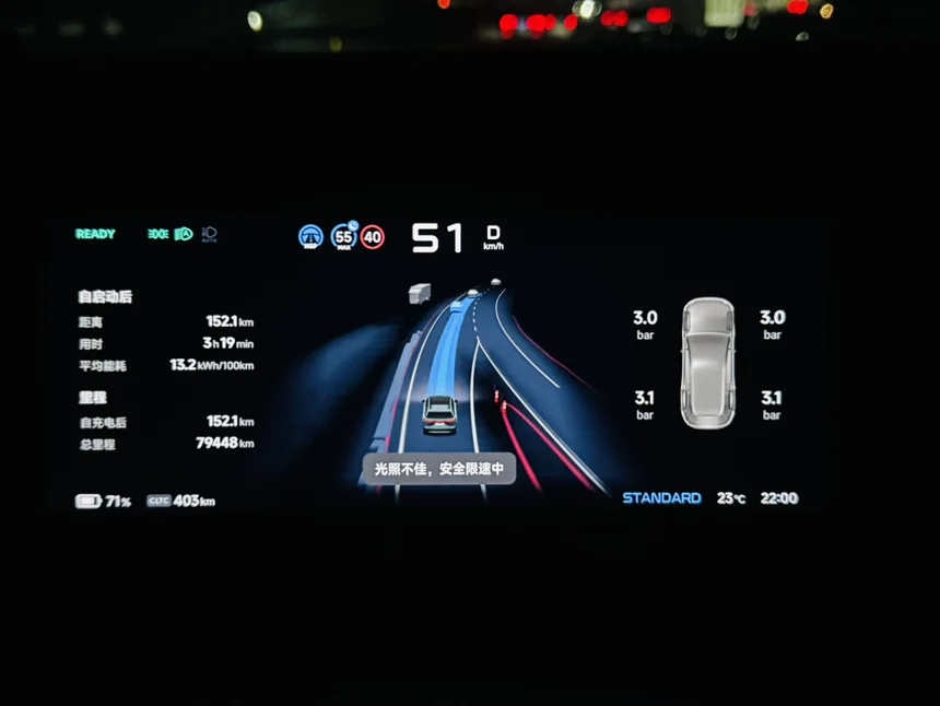 小鹏 g9 570max 清明自驾,因为高速堵车,被迫走国道,空调 22 度,风量 5 档,外部气温 23 度,满电时 564,跑了 152,还剩 403(cltc)续航,cltc 续航达成率 0.944。#能耗报告#