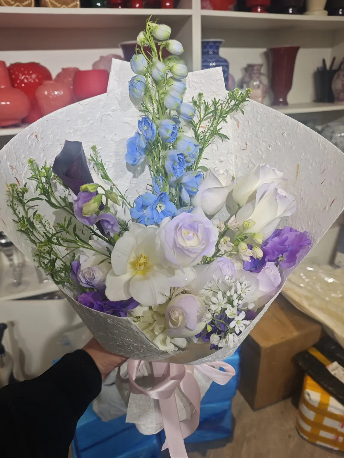 于是我网购了鲜花,从选购到搭配,再从辅材到醒花,可能第一次制作并没有很完美,但是用心的惊喜往往才是最戳人心的,毕竟爱情本来就是笨拙但又诚恳。