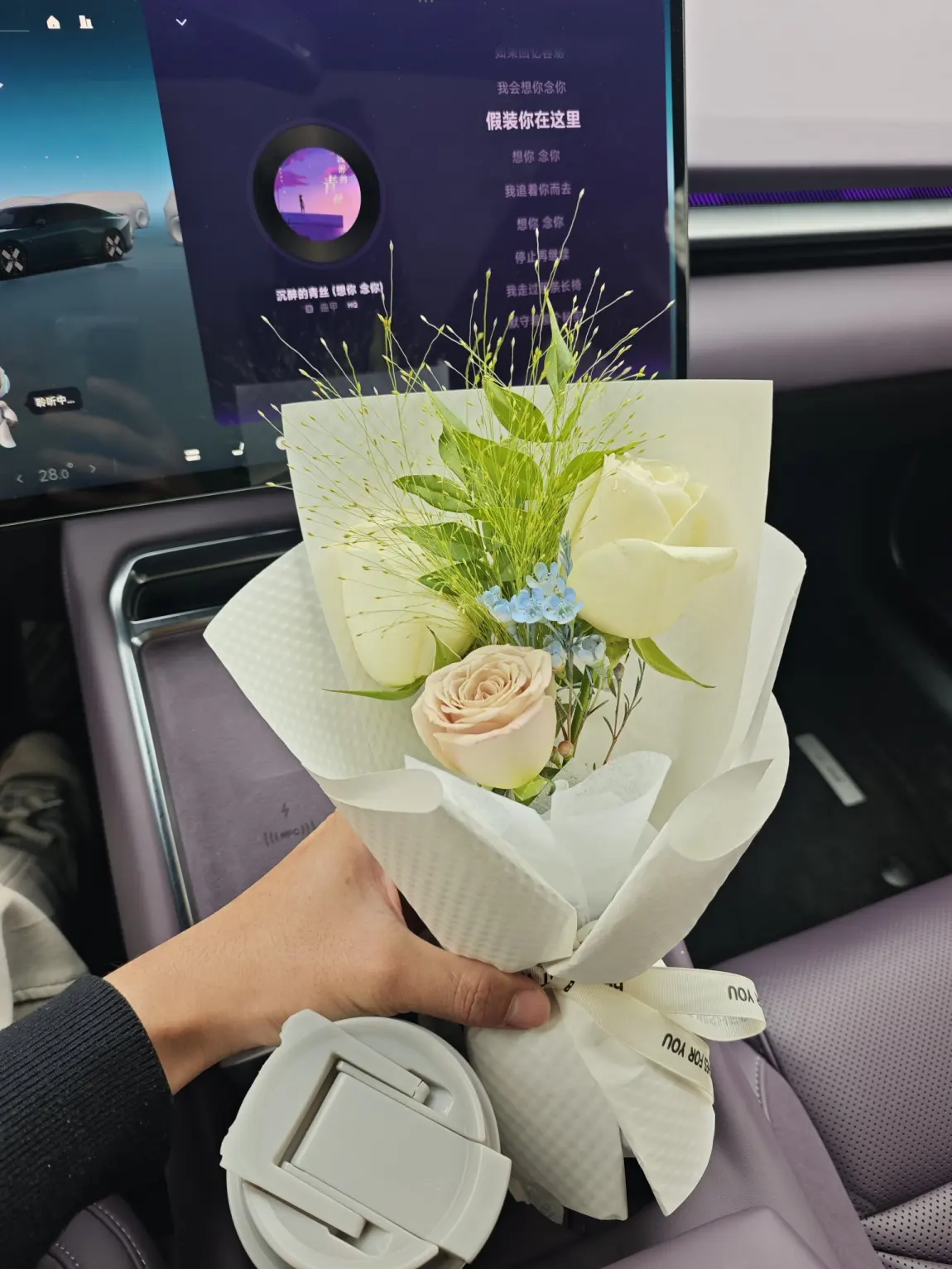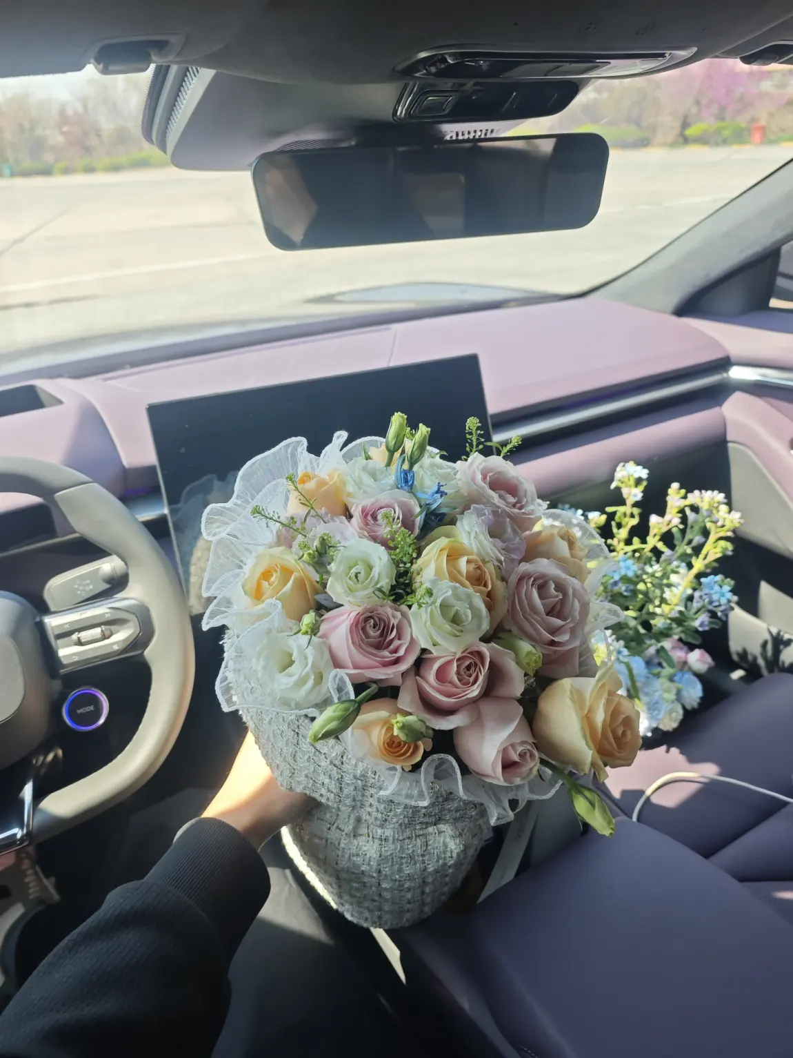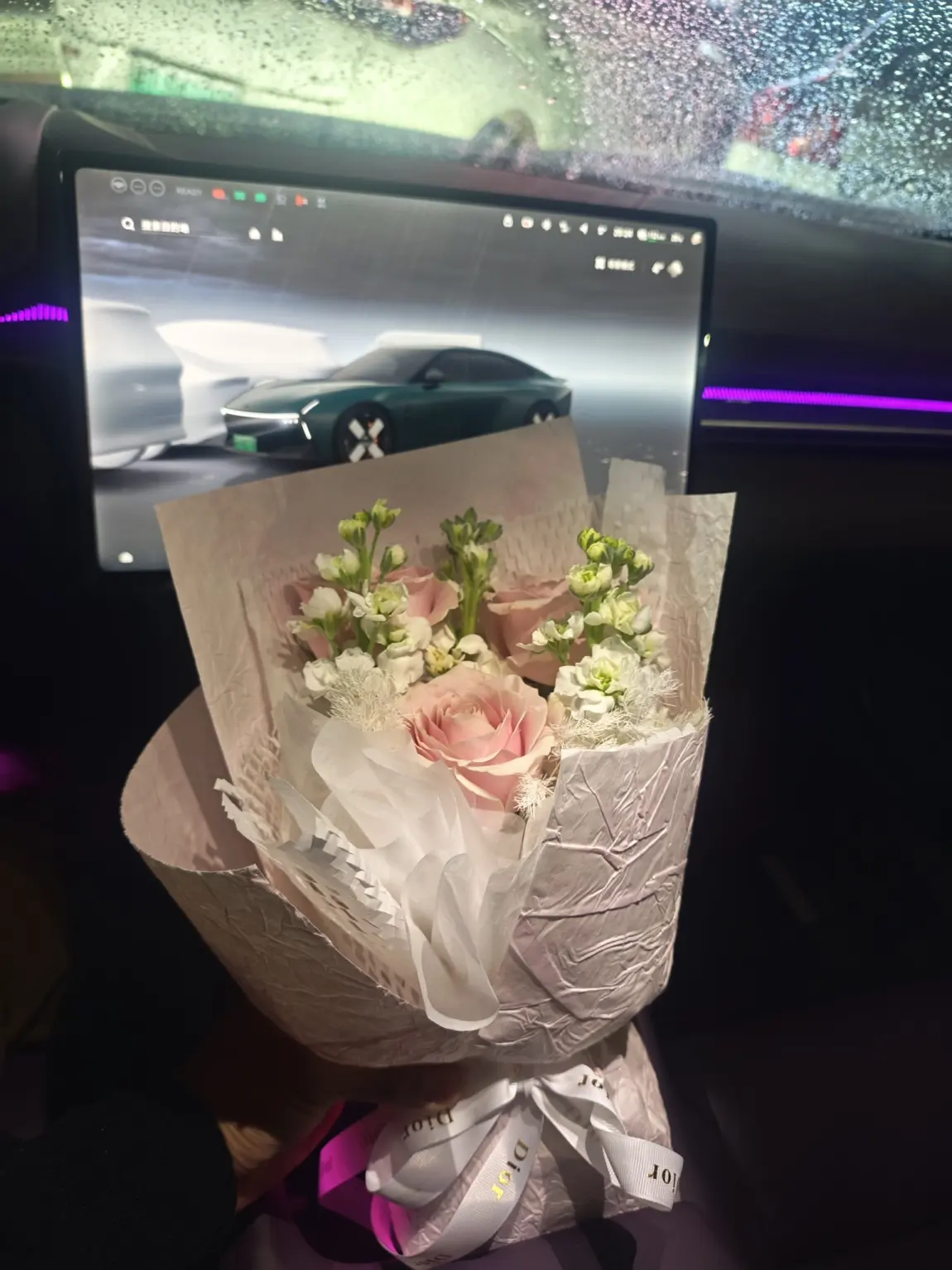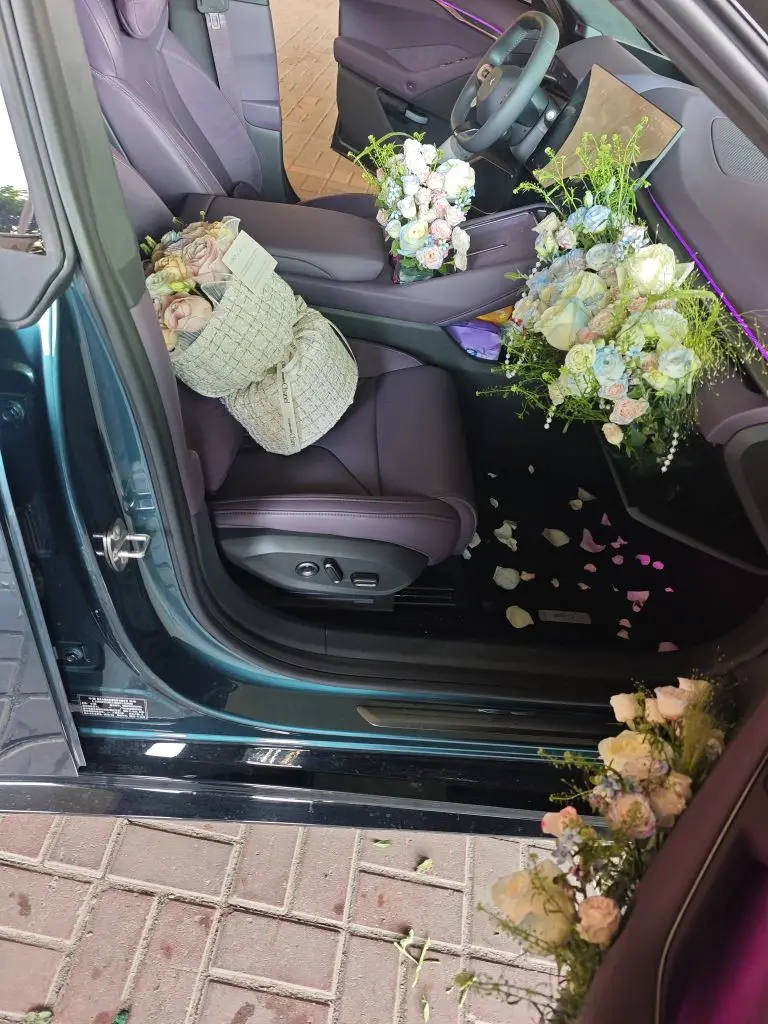 PS:全新小鹏P7的这个紫内饰,和鲜花搭配起来超级好看,我还DIY了智慧场景,氛围灯的点缀和小P的播报,让爱意更多了一份浪漫。#小鹏p7、#小鹏汽车、#把小鹏P7开进春天里、#交换春天