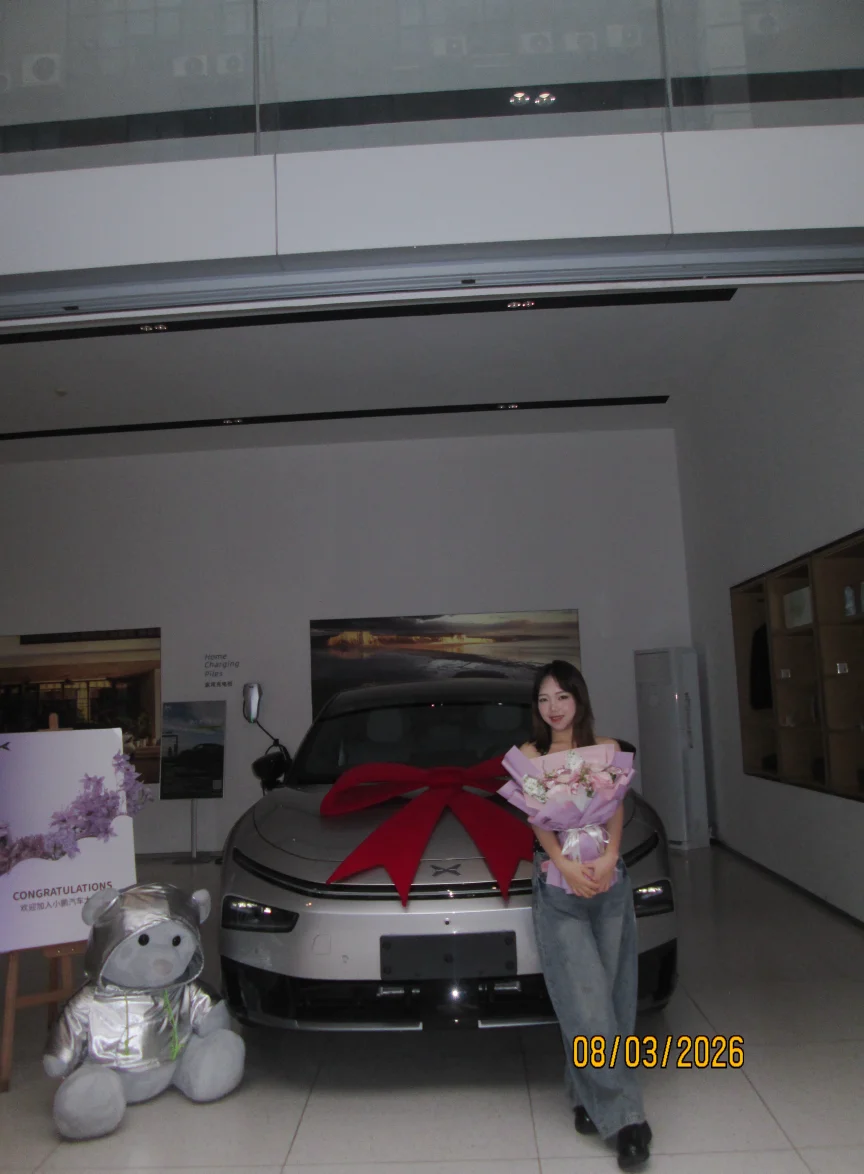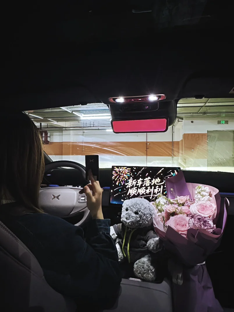 #我的提车作业# 去提车那天 一进到交付中心 看到我的新车车就在那里 被帅到了 永远不会忘记第一眼就喜欢的车 我的p7➕从刚开始没考虑过 到一看到就想下定 一周时间就完成了提车 工作人员也特别有耐心 感谢!真的好喜欢这个颜色 银外紫内 开回工作单位 都说我是炫酷女孩哈哈哈哈