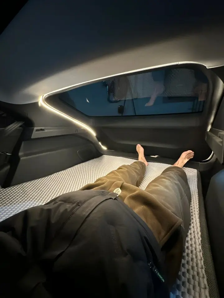 它是秒变大床房的移动民宿!放倒后排,铺上床垫,1米8的大高个也能轻松躺平,完全不局促。无论是在停车场打造温馨小窝,还是自驾时追一场湖边日落,躺在这里,看波光粼粼的湖面映着城市天际线,连风都变得温柔,瞬间拥有属于自己的治愈空间。