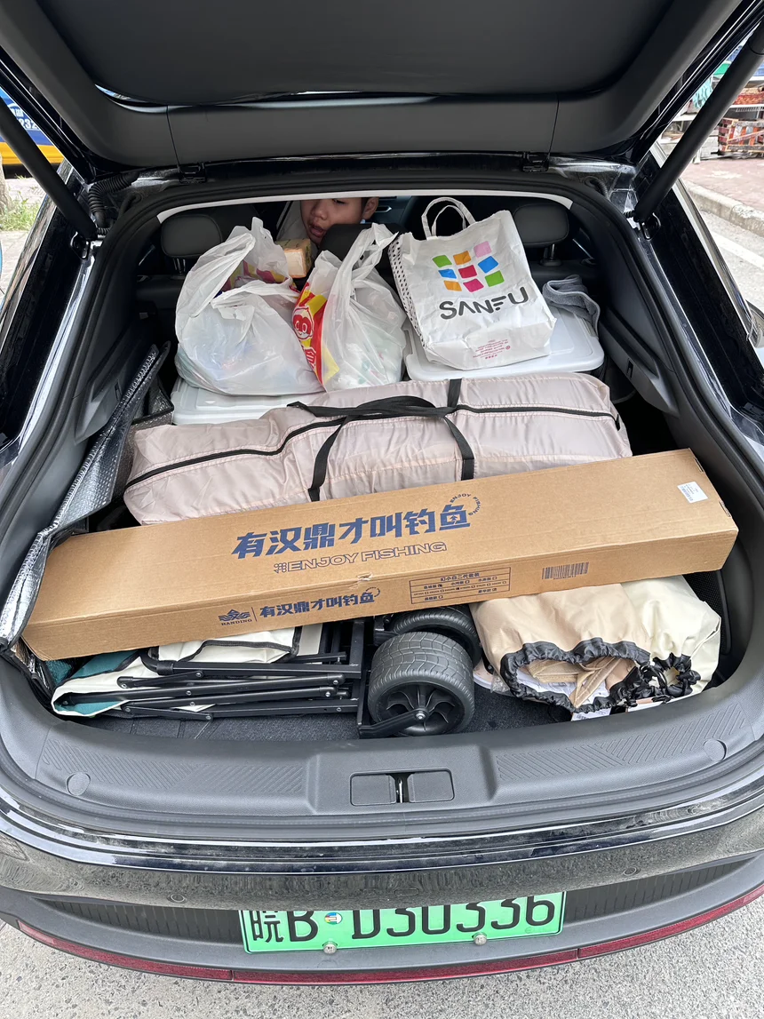 周末约上朋友去露营,帐篷、野餐垫、折叠桌椅、一大箱零食饮料,还有各自的背包,别人的车可能要塞得满满当当、关不上门,我的MONA轻轻松松就全搞定。常规600多升的后备箱本来就大,再加上这个超大的掀背开口,东西随便往里扔,规整又不局促,后排坐满人也完全不影响,出发时后备箱依然整整齐齐。