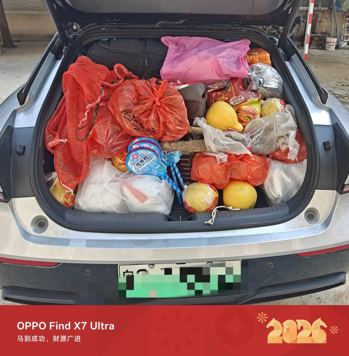 没有大家精致的后备箱,但是仍然装满的是父母给我满满的爱~一个大的后备箱真的很重要,爸妈恨不得把整个家塞进去~哈哈