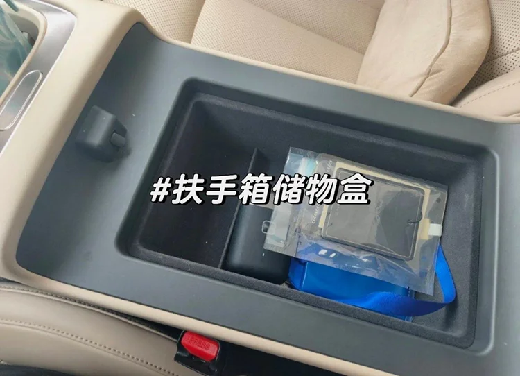 扶手箱空间有限,加了个隔层,主要放驾驶证行驶证,充电卡,还有必须🉐放应急手电和安全锤!!!商城直接积分兑换的😄