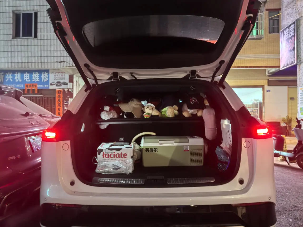 小鹏的车尾箱,真的超能装的!不仅能装得下我一堆的毛娃娃,放个小冰箱也是空间非常的富裕,真的是我的移动储物间啊