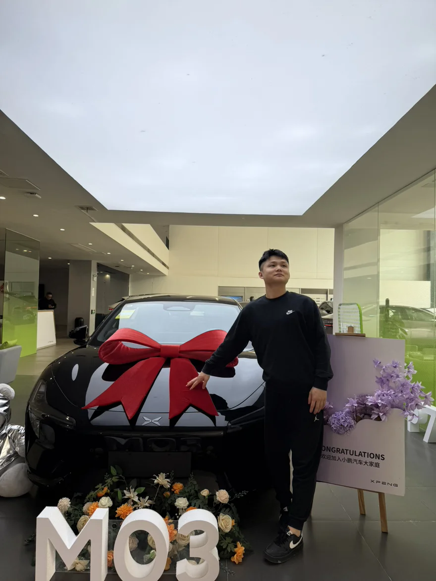 初见小鹏M03,暗夜黑配色与溜背轿跑线条直击审美 低趴宽体 星舰灯组电动掀背尾门,颜值与实用兼具,一眼沦陷,当即决定就是它。