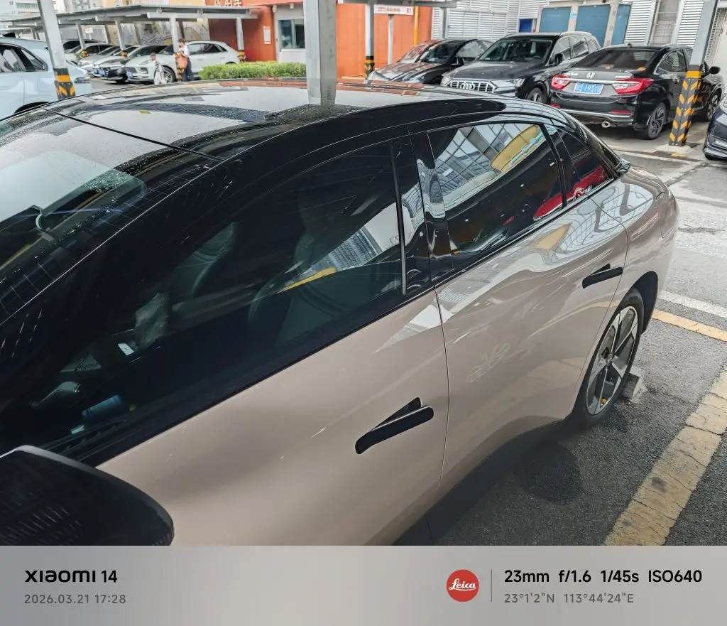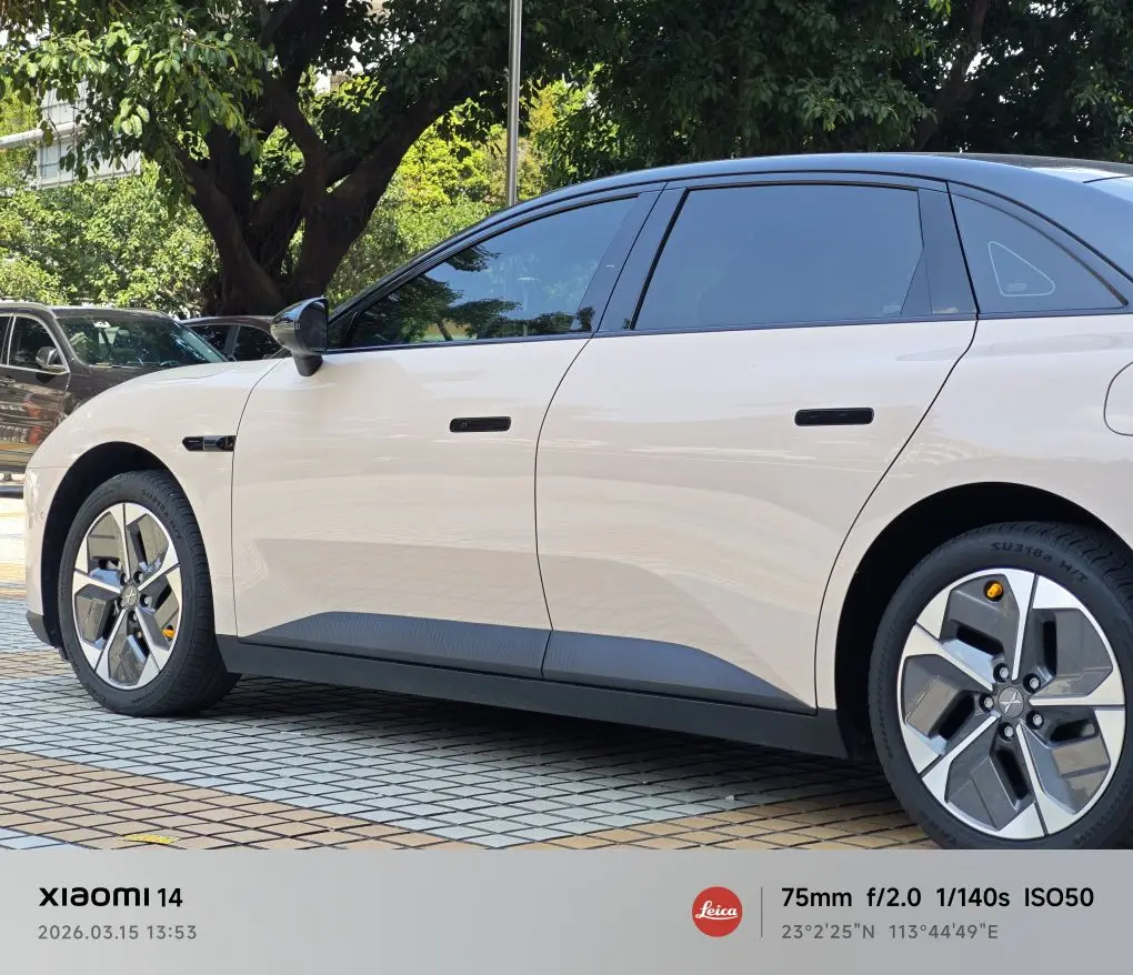 前浅后深的搭配完美适配奶白车身+悬浮黑顶,侧窗高隐私膜从车外几乎完全看不到车内,整车精致感直接拉满,贴完瞬间提升档次,和小鹏MONA的运动轿跑造型适配度拉满。