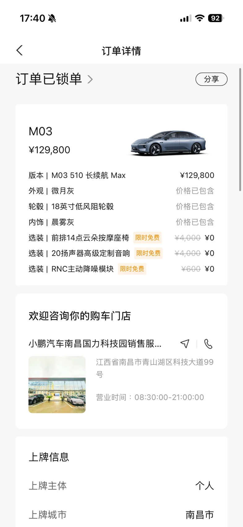 #小鹏MONA M03# 从回南昌就开始看车,第一辆海豹 06GT,就因为问了句售后有啥服务,销售直接甩脸子,当场退订。转头定了深蓝 L06,销售隐瞒无机械钥匙孔,验车当天大雨请假去,车没检测没洗就算了,交付中心直接甩锅销售让我白跑。后面强制捆绑保险、背着我私自放款,首付都交了还是果断退车。然后还试了极氪 007、S5都不大满意。直到 26 款小鹏试驾直接惊艳!内饰、隔音、智驾、底盘全维度升级,加上姐姐他们店就是卖小鹏的,服务态度很好,靠谱又省心,我直接拿下!