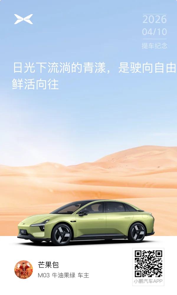 #买小鹏前VS买小鹏后# 滴滴~🎊🎊Let's MONA🚗恭喜我成为赣州市第一台2026版M03牛油果🥑绿的车主🎉🎉买车前:公交车上下班,一天来回通勤时间长达80min左右,遛娃也走不远只能在家附近买车后:通勤时间缩短一半,遛娃也能去更远的地方,带宝宝看更远的世界