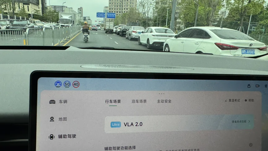 第一段从停车场车库出发,车辆自动规划路径、避让行人、驶出闸机,汇入主路后丝滑变道。遇到无保护左转,系统精准判断对向车流,果断通过。第二段晚高峰,复杂路口加塞车流中,VLA稳稳跟车、预判刹车,全程零接管、零压力!高光时刻是途经施工路段,车辆识别锥桶并自动变道,老司机般从容。