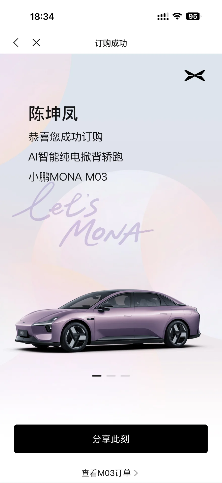 #小鹏MONA M03# 纠结了好久,终于决定了这个小紫色。决定买小鹏,看中它的智能驾驶,太牛了,没让我失望。对比了零跑S01的炫酷外观和理想L9的豪华内饰后,意外发现小鹏G3i在智能化和实用性上更胜一筹,特别是下班路上遇到堵车时,NGP自动跟车功能让通勤变得轻松,周末跑长途时超充站的便捷布局也让人安心,试驾完当天就决定下单